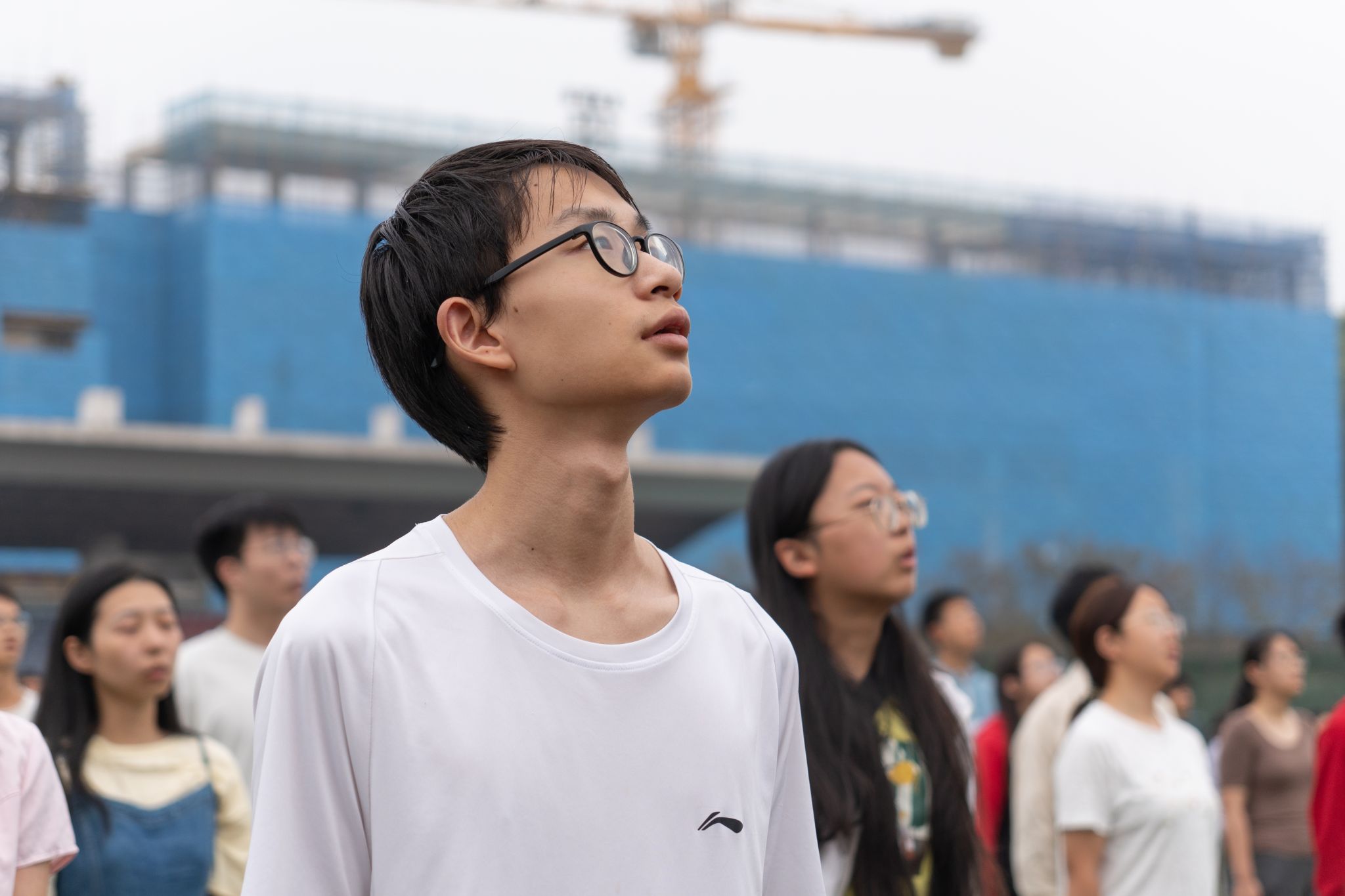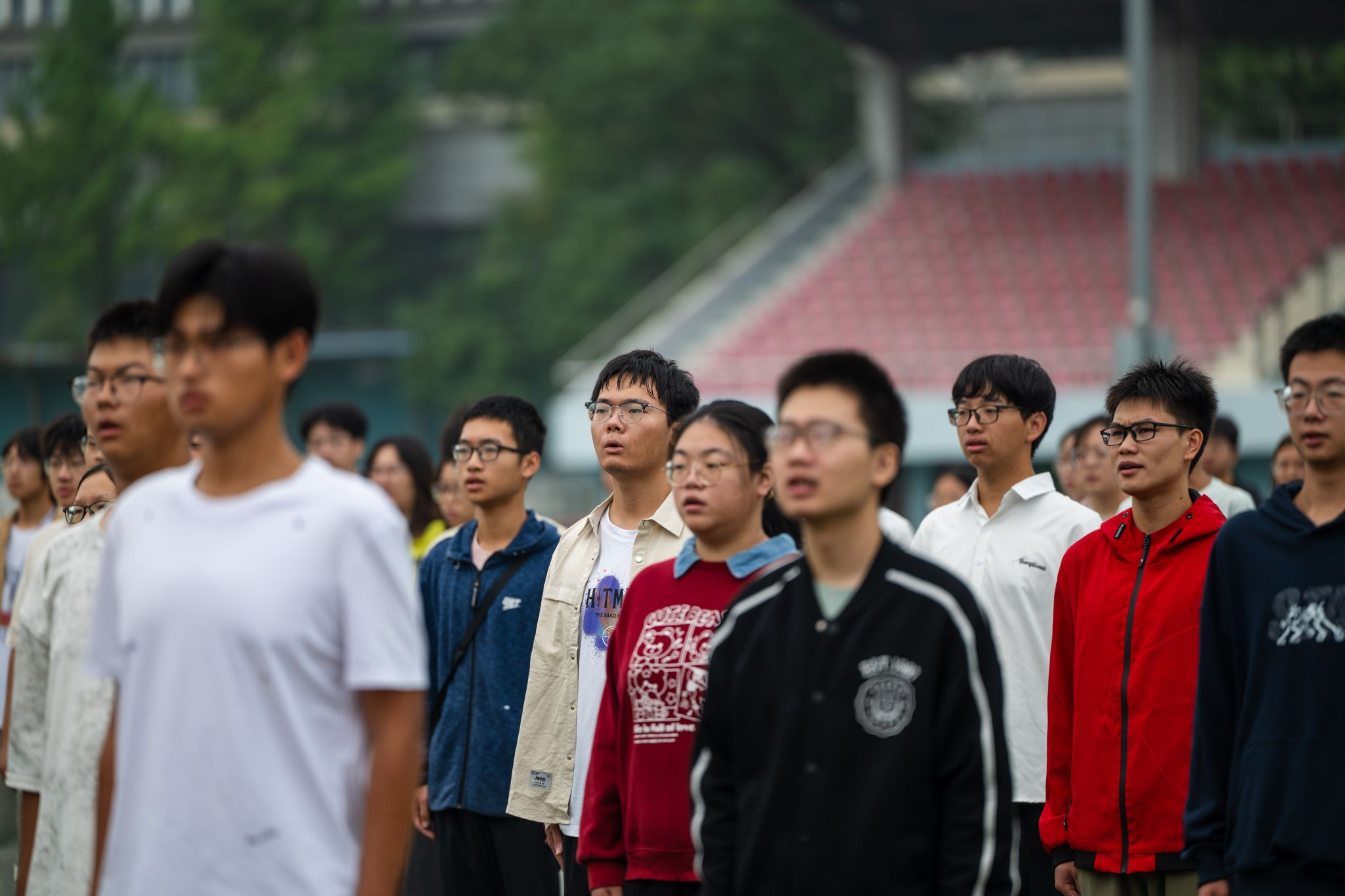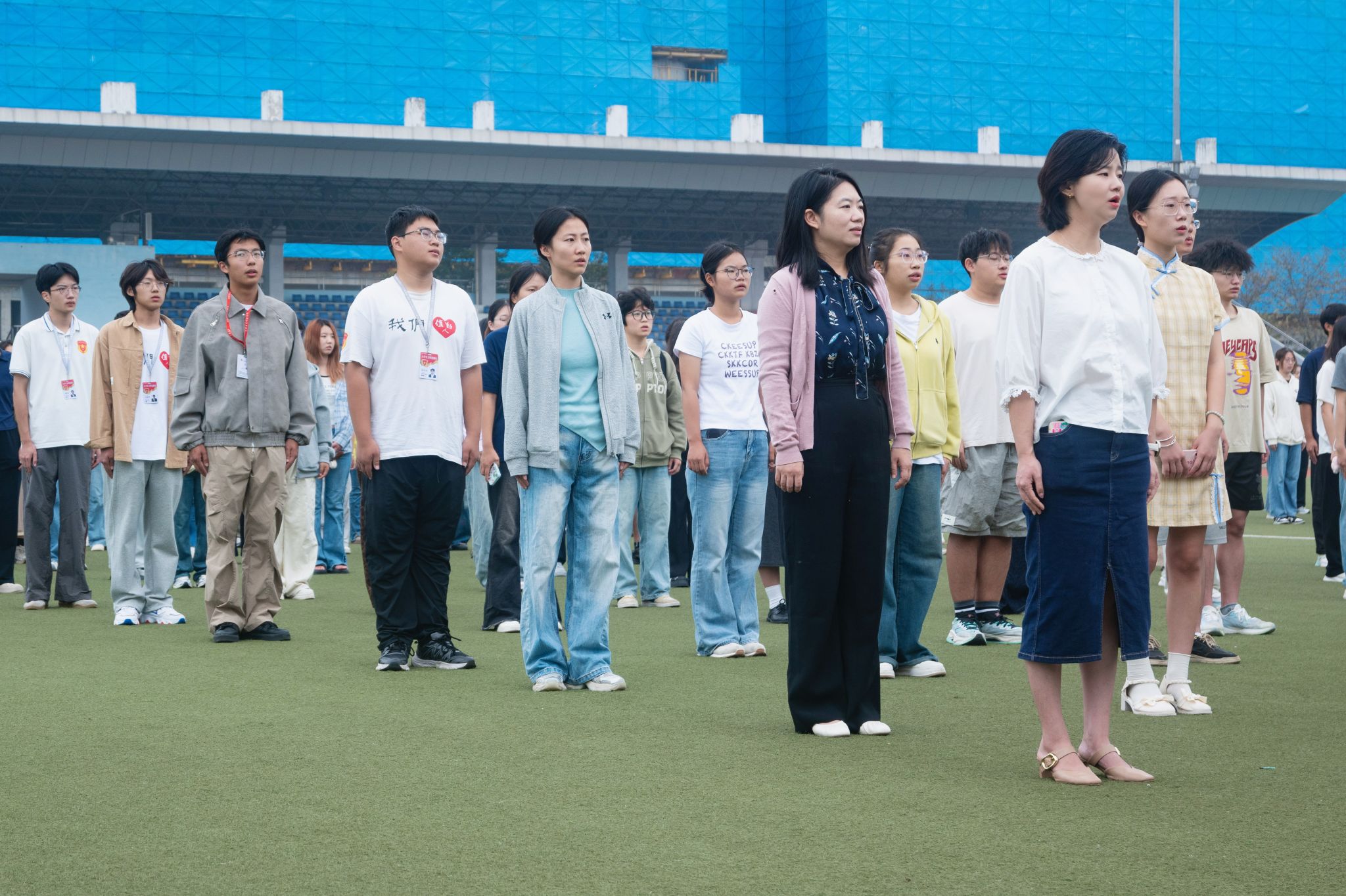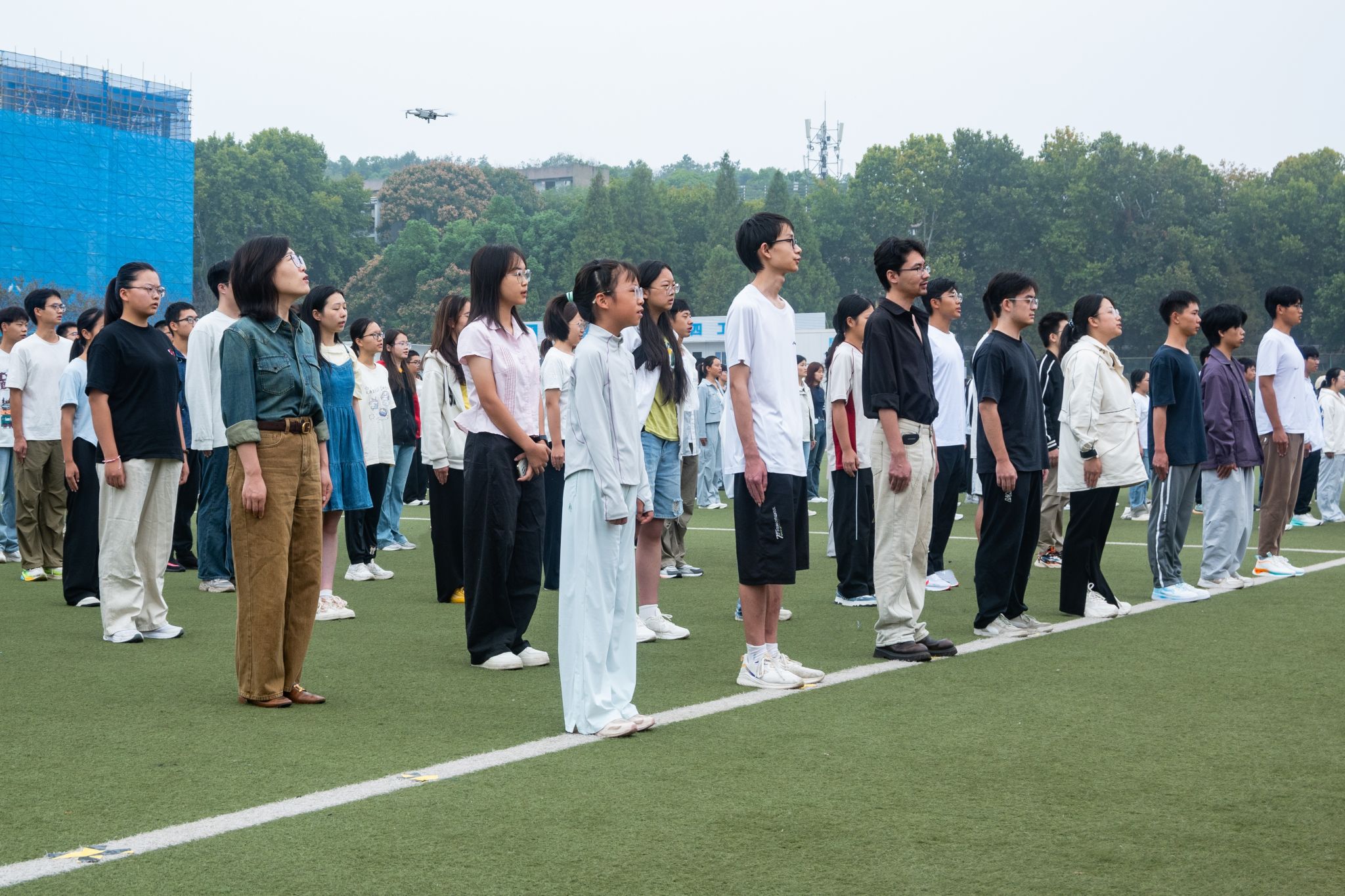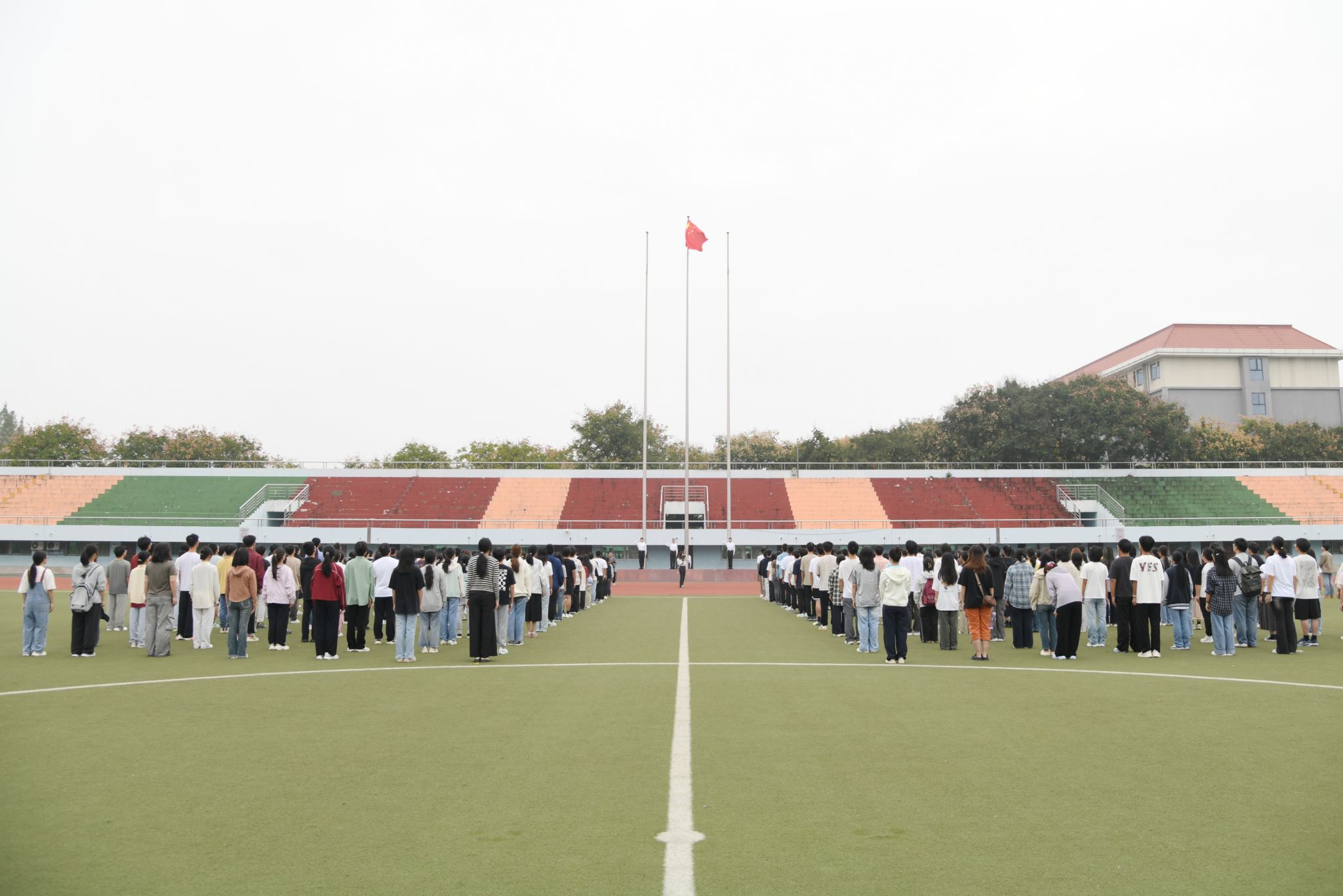 升旗仪式结束后,现场响起了《我和我的祖国》的悠扬旋律。“我和我的祖国,一刻也不能分割……”在场师生深情放歌,动人的歌声在东运动场上空回荡,汇聚成对祖国深沉的爱。