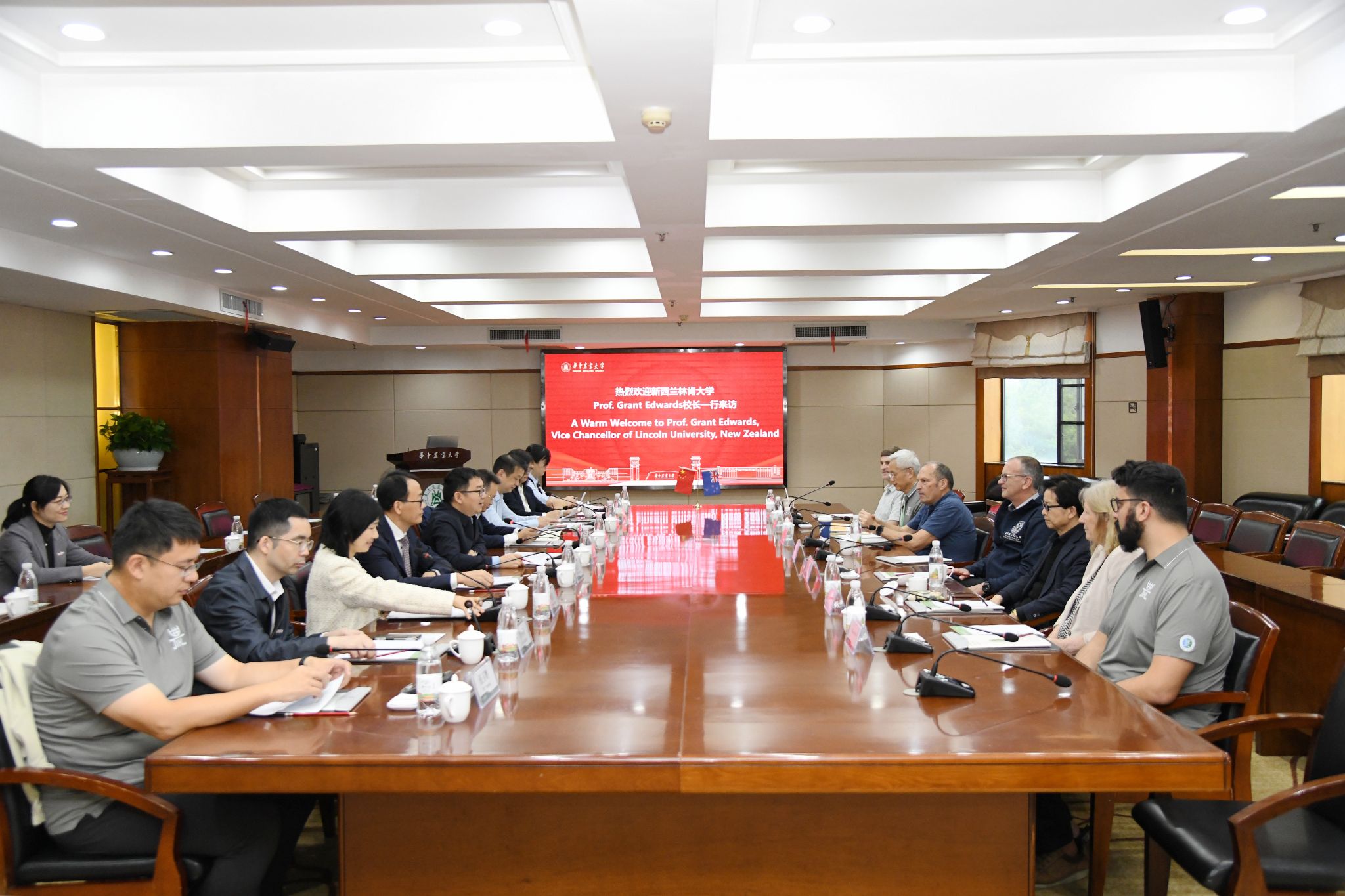 Grant Edwards高度赞赏我校在农业教育和科研创新方面取得的成就。他表示,新西兰林肯大学与华中农业大学在办学理念、学科特色和发展目标上高度契合,双方合作基础坚实、前景广阔。他希望两校能在联合科研平台建设、师生互访、博士联合培养等方面进一步深化合作,共同推动农业科技创新和人才培养。