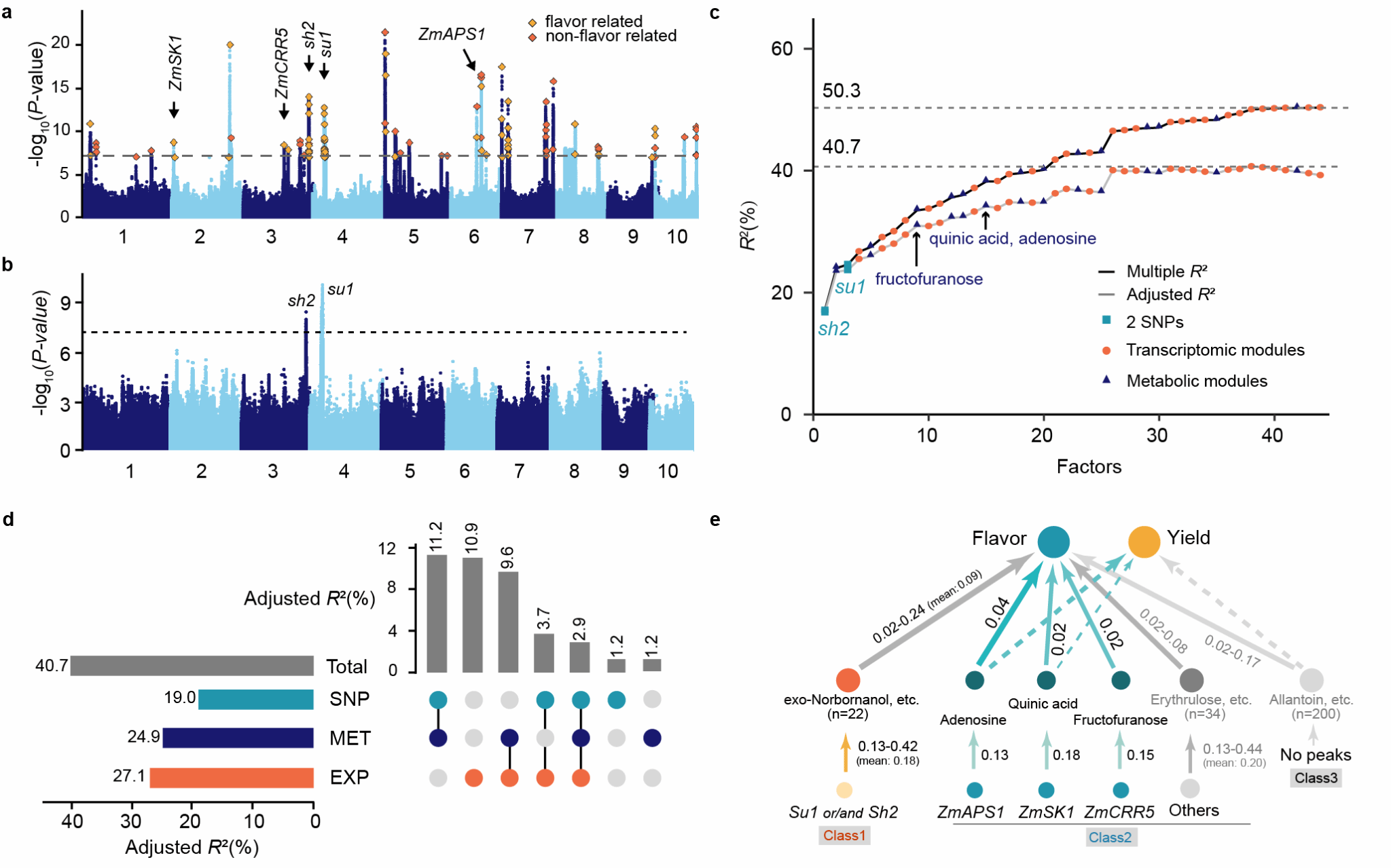 图3. 甜玉米风味的多组学调控基础及精准预测