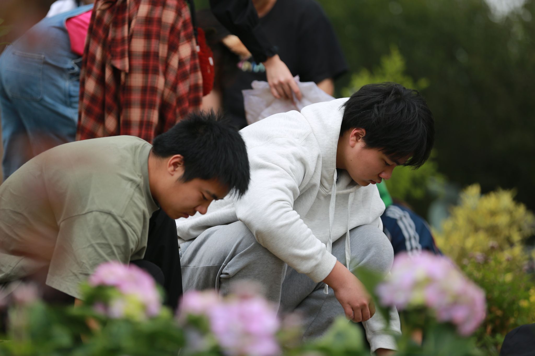 一公里外的蕙芷园里,由园林2303班同学联手打造的“九畹惠风”小花园正焕发着生机,远远望去,旱溪蜿蜒,花影摇曳,为秋日的校园平添了一抹诗意。