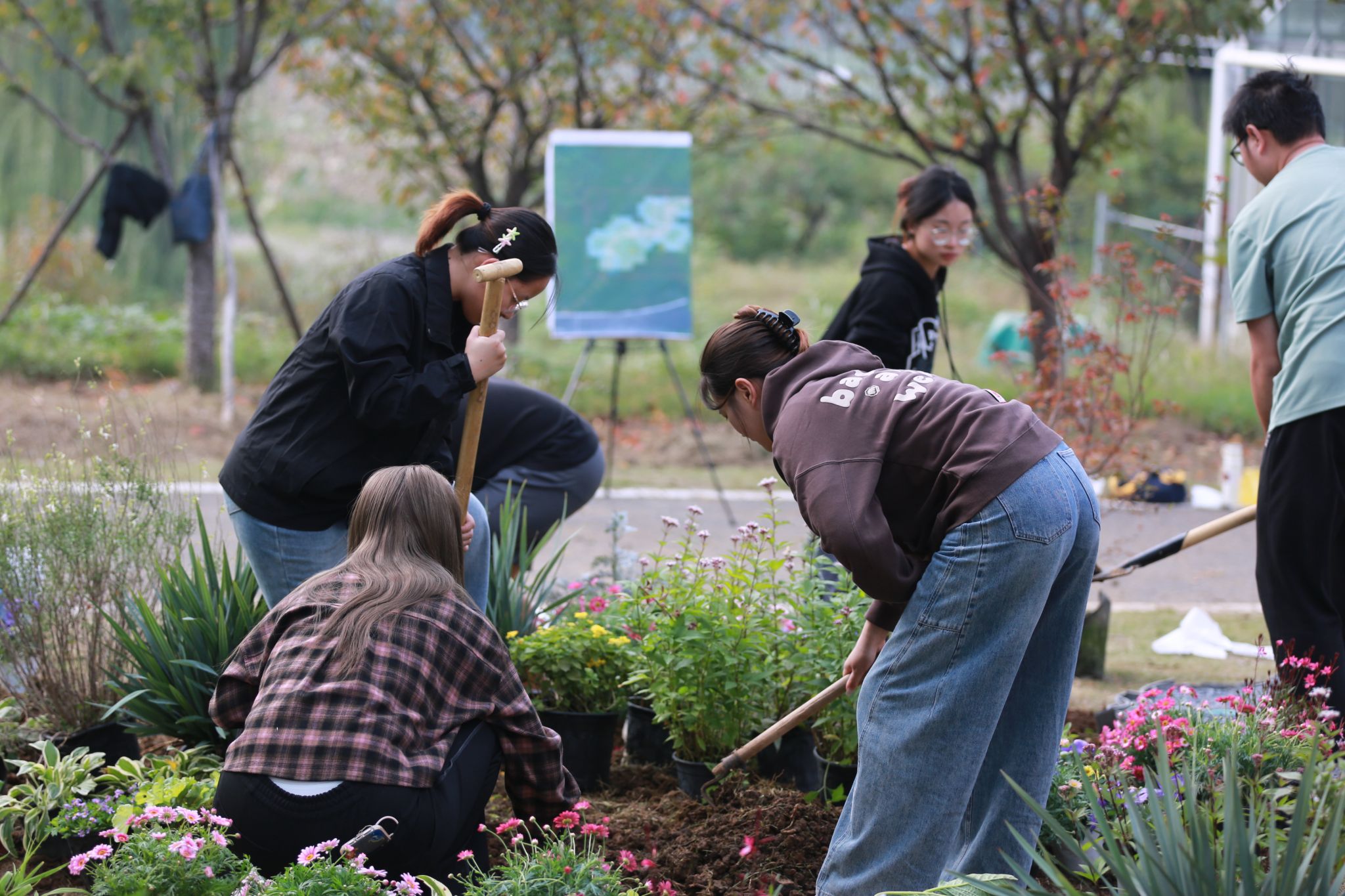 “设计理念的落地,往往要经历现实考验。”最初想在园子里种上很多美丽的植物,实地勘察后才发现,园艺林学学院东北侧光照不足,很多喜阳花卉可能无法存活,不少植物的实际株高、大小等情况,也和绘图时的构想有差异。”作为植物配置组成员,张宁坦言,在张俊卫等老师的指引下,团队反复调整了植物清单,通过这一过程,同学们不仅拓展了认知,更深切体悟了“纸上得来终觉浅”的道理。