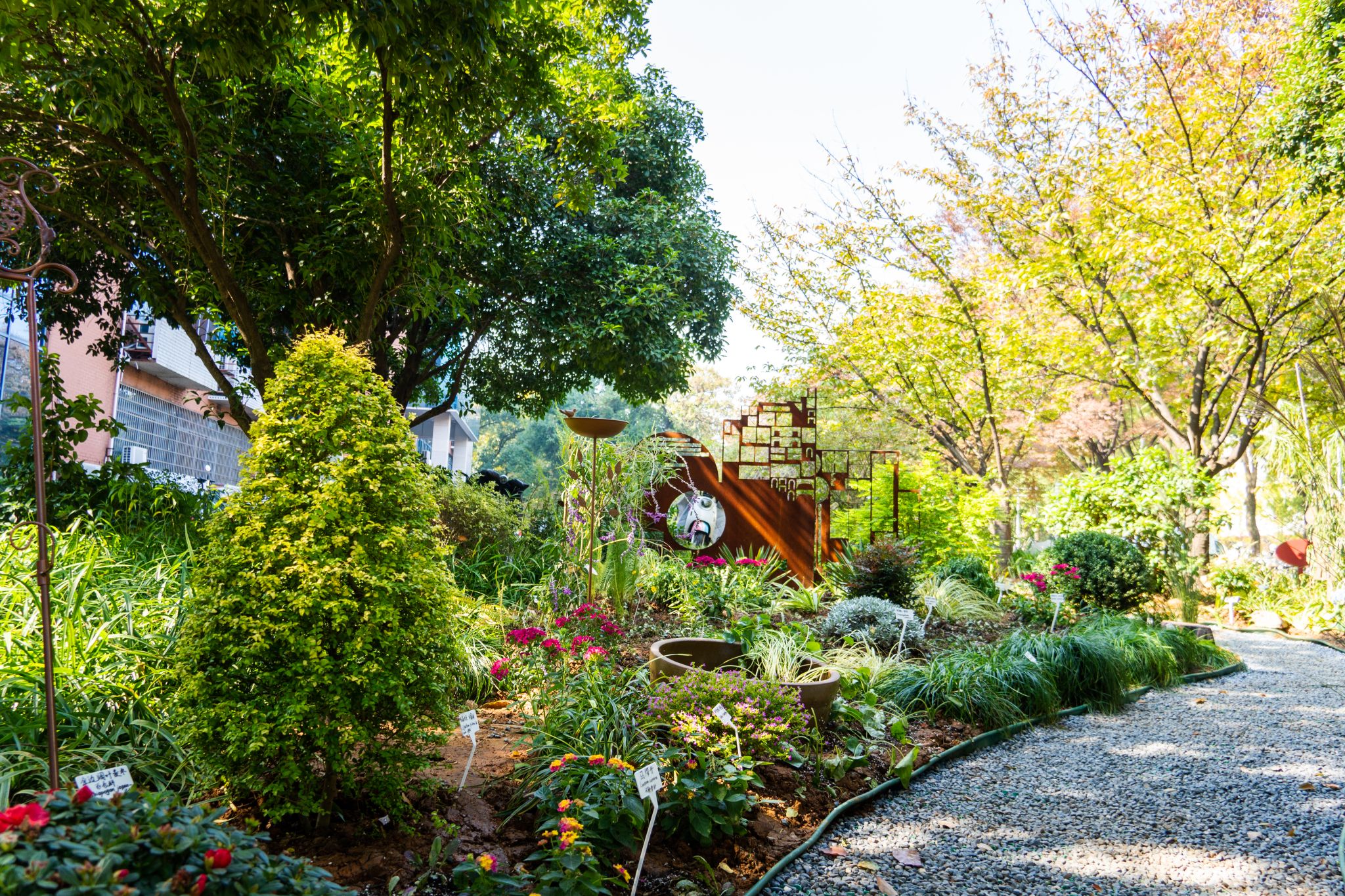 如今,这两处由师生共同缔造的花园已成为校园新景。晴日里,总有师生驻足流连。此情此景,恰是诗意栖居在园林最真实的写照。
