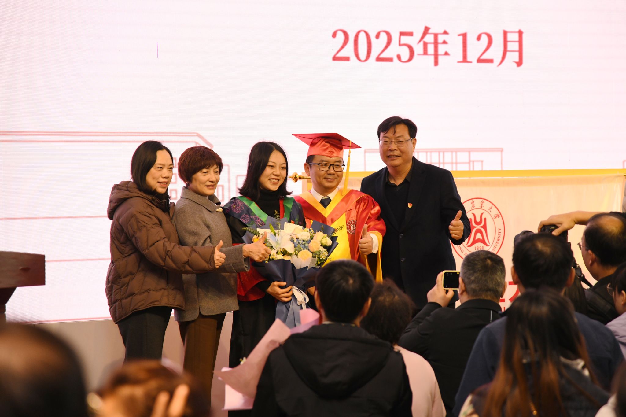 “勤读力耕,肩重任;立己达人,图自强……”当熟悉的旋律再次响起,全体起立高唱《华中农业大学校歌》,现场许多同学眼中此时已泛起泪光,2025年12月学位授予仪式圆满结束。