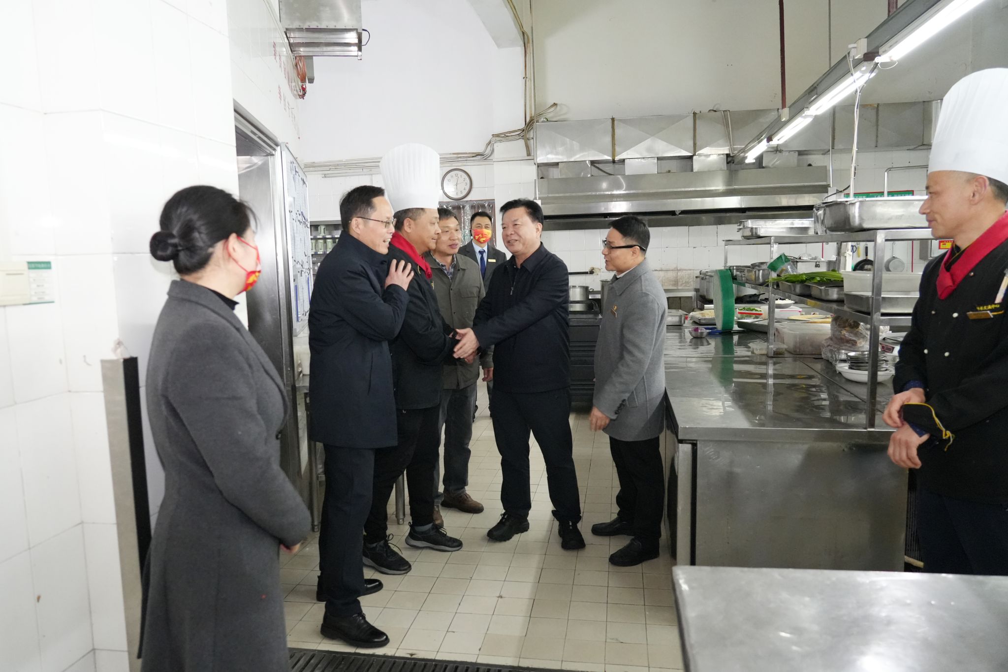姚江林到后厨慰问工作人员(以上照片由记者 晏华华 拍摄)