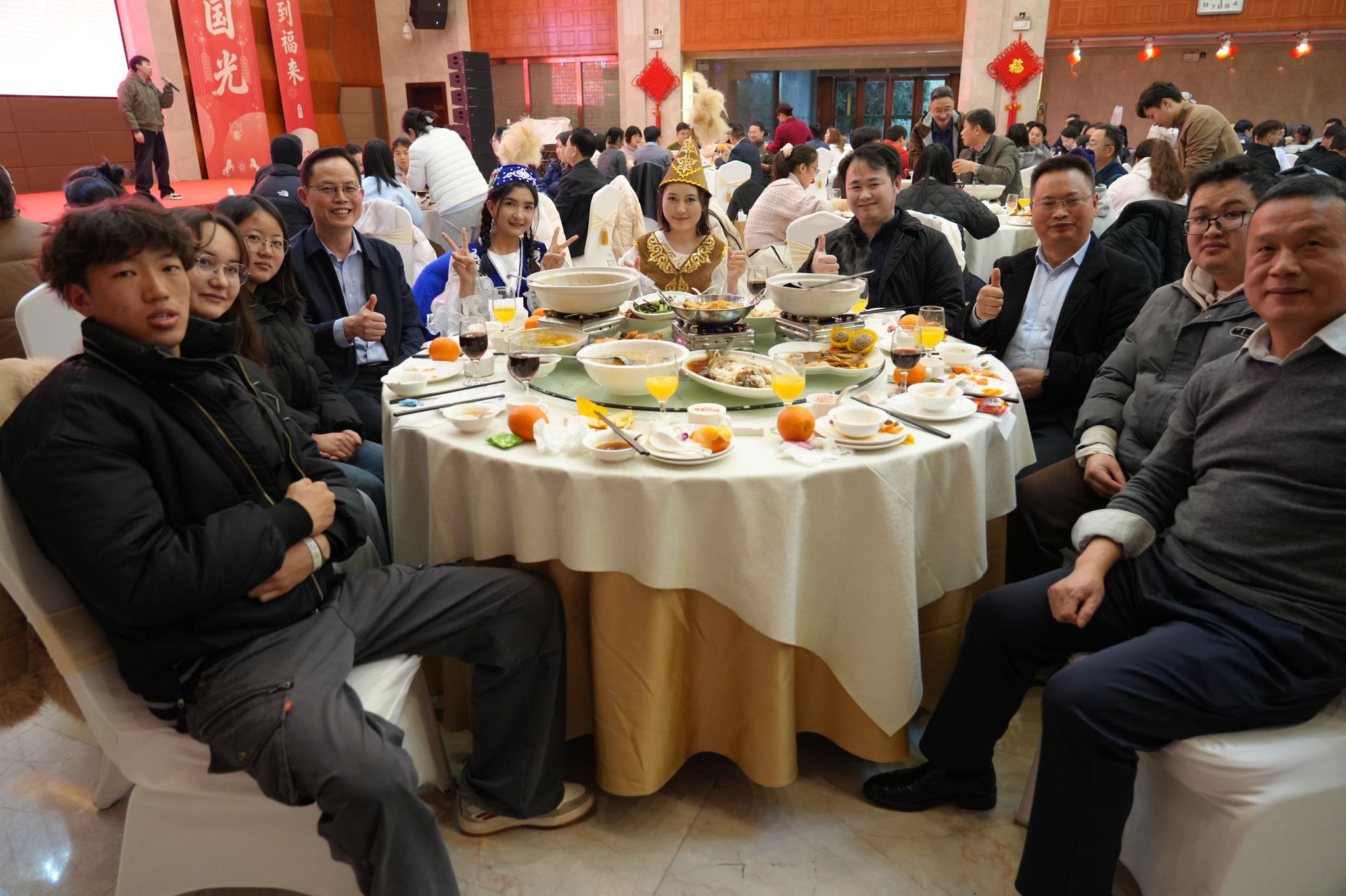 餐桌上,热气腾腾的饭菜香气扑鼻,脐橙、板蓝根油菜薹、华墨香黑米、华农甜玉米、无肌间刺武昌鱼等一系列“华农味道”悉数上桌。师生们围坐在一起,举杯同庆、畅叙情谊,畅谈过去一年的收获与成长,共话新一年的蓝图与希望,一句句真诚的祝福、一声声温暖的问候,汇聚成马年新春动人的旋律。