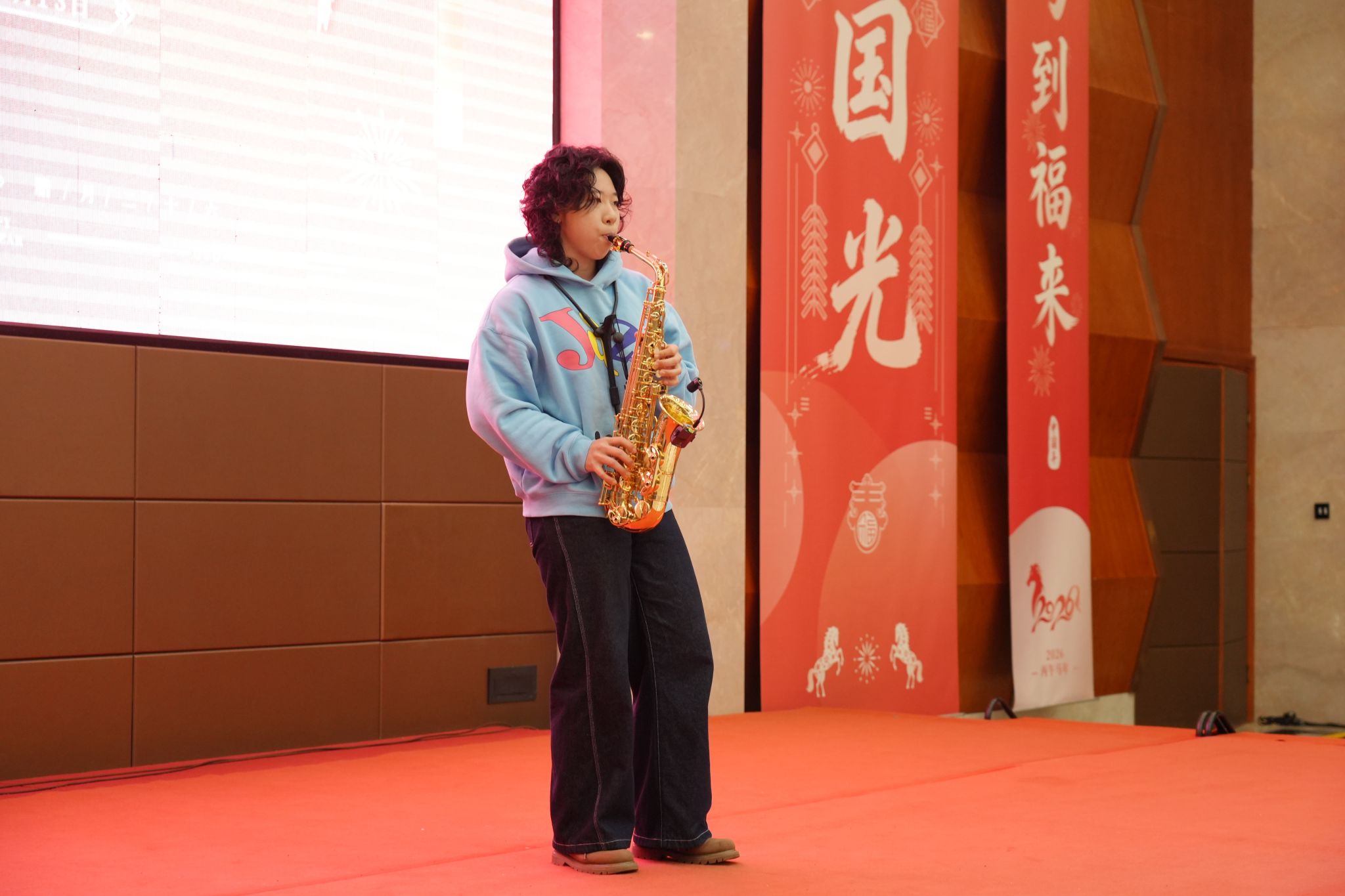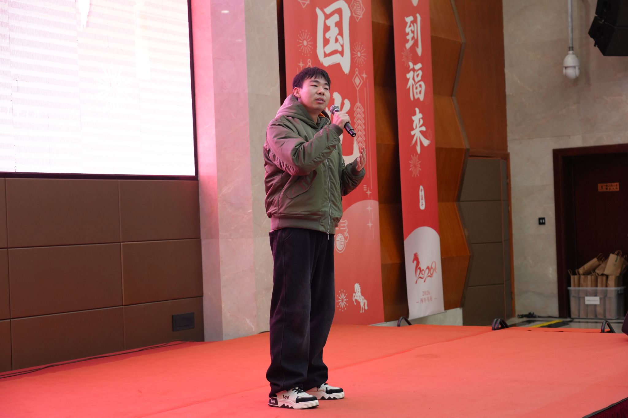 席间,同学们载歌载舞、各展风采,悠扬的歌声、欢快的舞蹈传递着节日的美好祝福,现场掌声不断、暖意涌动。为增添节日乐趣,活动还特别设置了三轮幸运抽奖环节,运动相机、智能手环、蓝牙耳机等新年礼物陆续送出,让现场氛围一次次推向高潮。