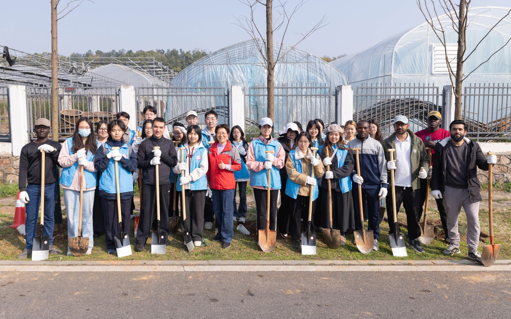 参与植树节活动师生合影留念(学通社记者 赖德义 摄)