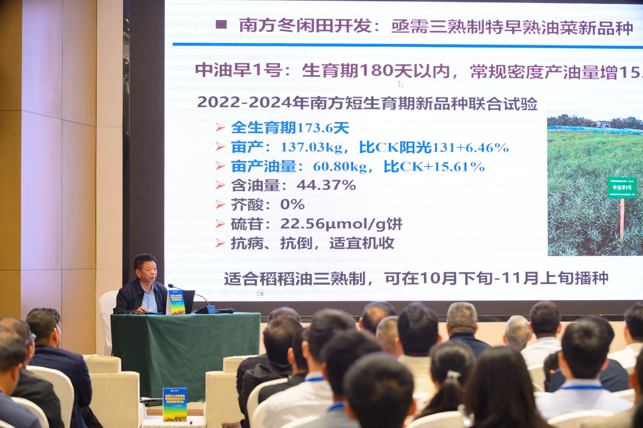 王汉中院士作题为《我国食用油供给安全风险及油菜产业的使命》的报告(通讯员 顾泽洋 摄)