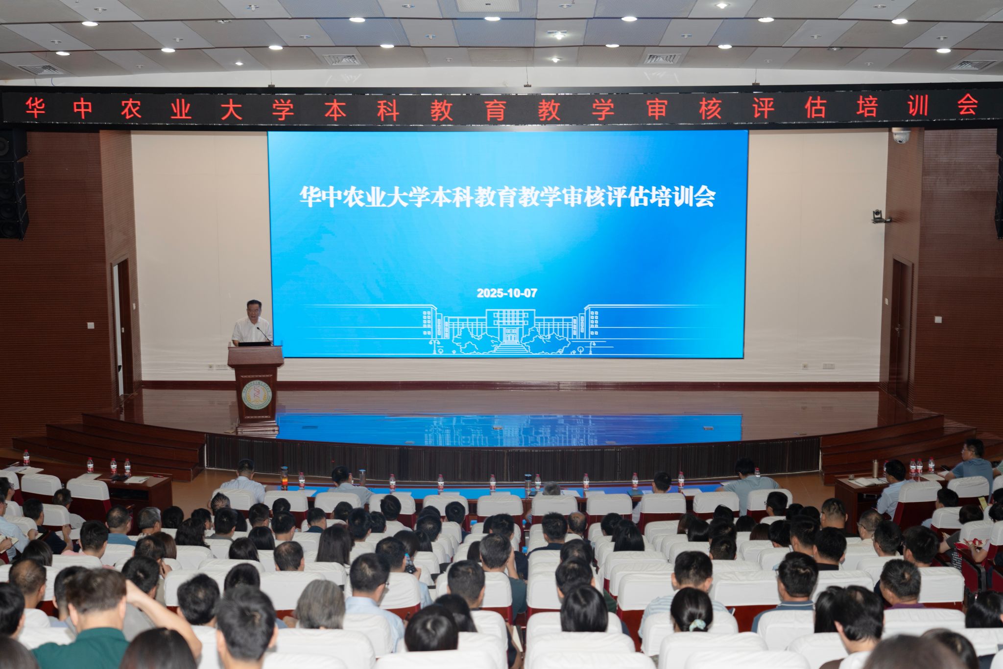 南湖新闻网讯(记者 杨正莲)10月7日下午,学校在作物遗传改良全国重点实验室一楼报告厅召开本科教育教学审核评估培训会。全体在校校领导、全体副处级及以上领导干部、学校本科教学督导员、各专业负责人,全体本科生辅导员、教学秘书,本科生院、团委全体成员参加会议。校党委书记姚江林主持会议并讲话。