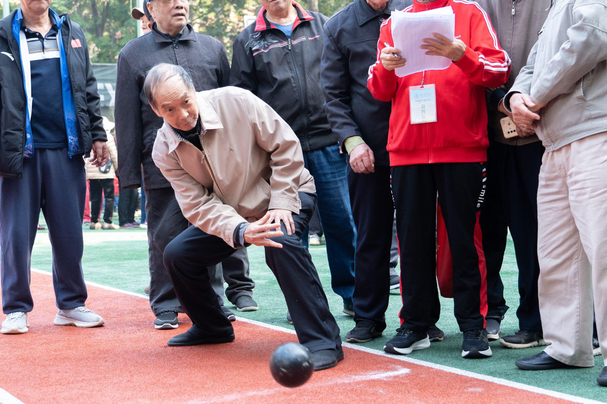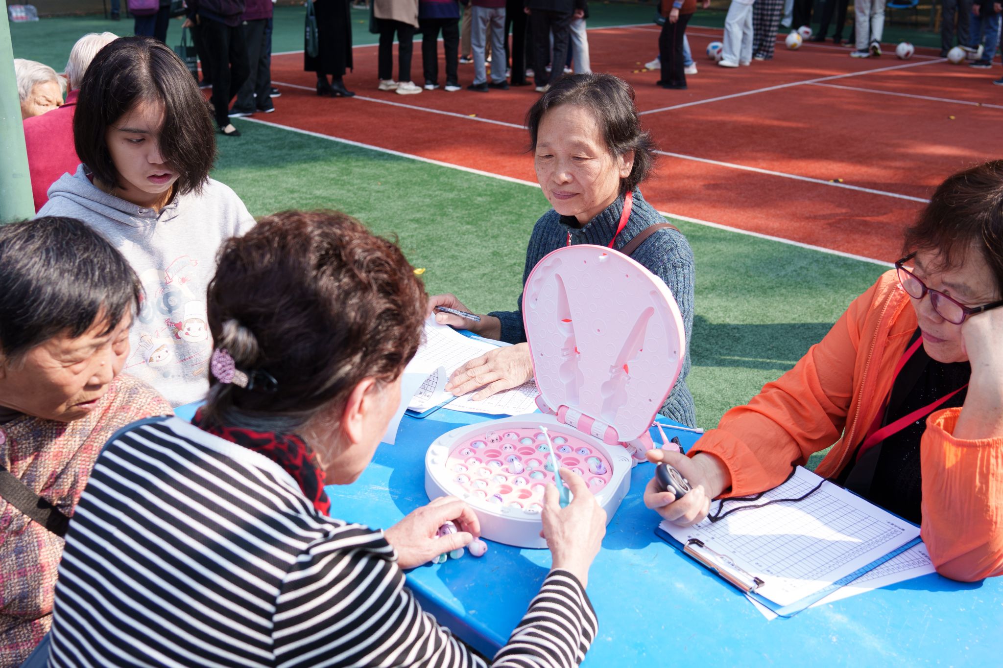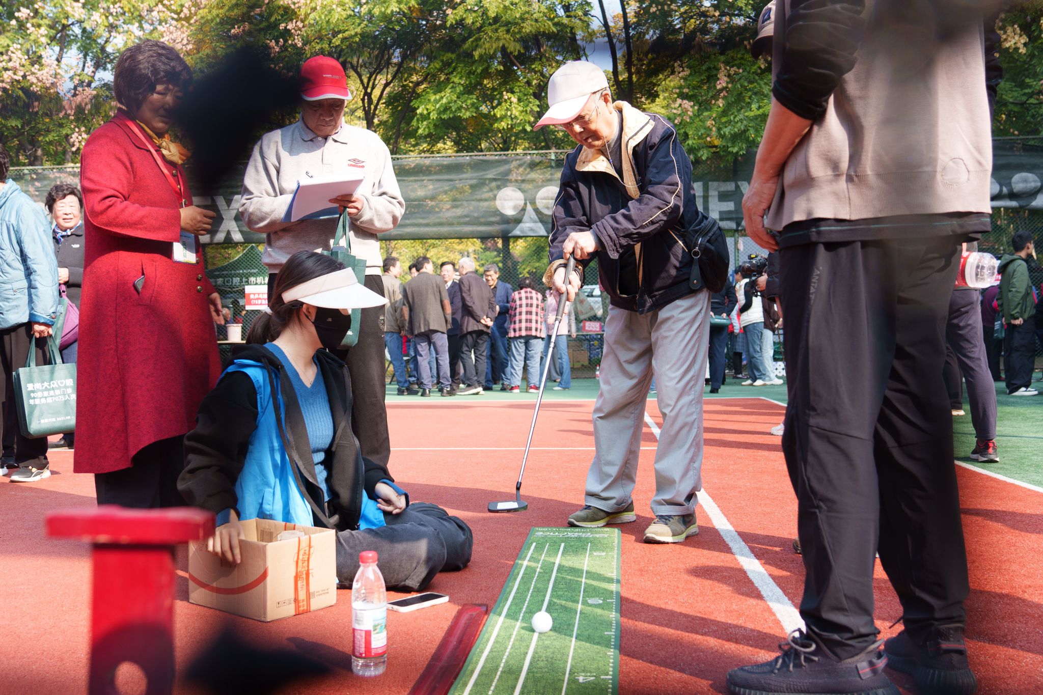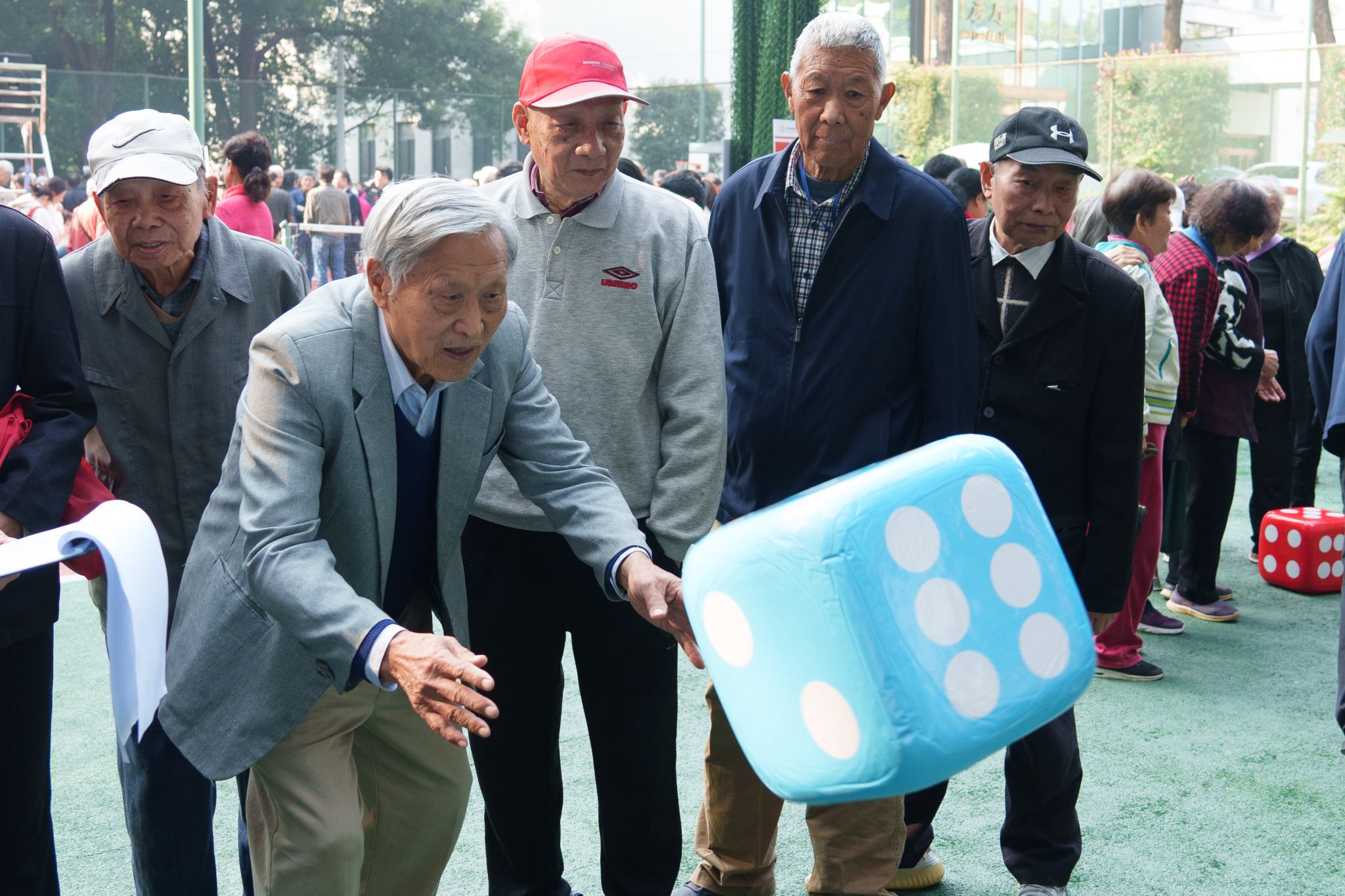 本届运动会按年龄分为75周岁及以上和全年龄段两个组别,设有趣味钓鱼、建高楼、夹乒乓球、沙包掷准、保龄球、掷骰子、踢球射门、羽毛球、投篮、飞镖、高尔夫和投壶等12个项目。