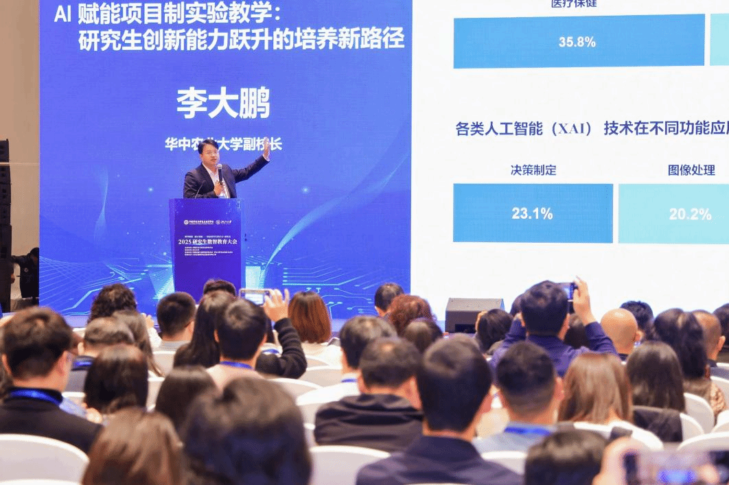 副校长李大鹏教授向与会的研究生教育同仁详细分享了学校在人工智能赋能研究生项目制实验教学上的改革创新实践,把学校以“人工智能”为技术支点,以“项目制实验教学改革”为突破口,构建“知识迭代-能力贯通-资源融通-管理智慧”四位一体的创新能力培养新体系,推动教学资源从“分散孤立”到“系统集成”转变、教学关系从“师徒制”单向传授到智慧互动转变、教学效果从技能学习到问题解决的全流程训练转变的实践经验进行了详细介绍。