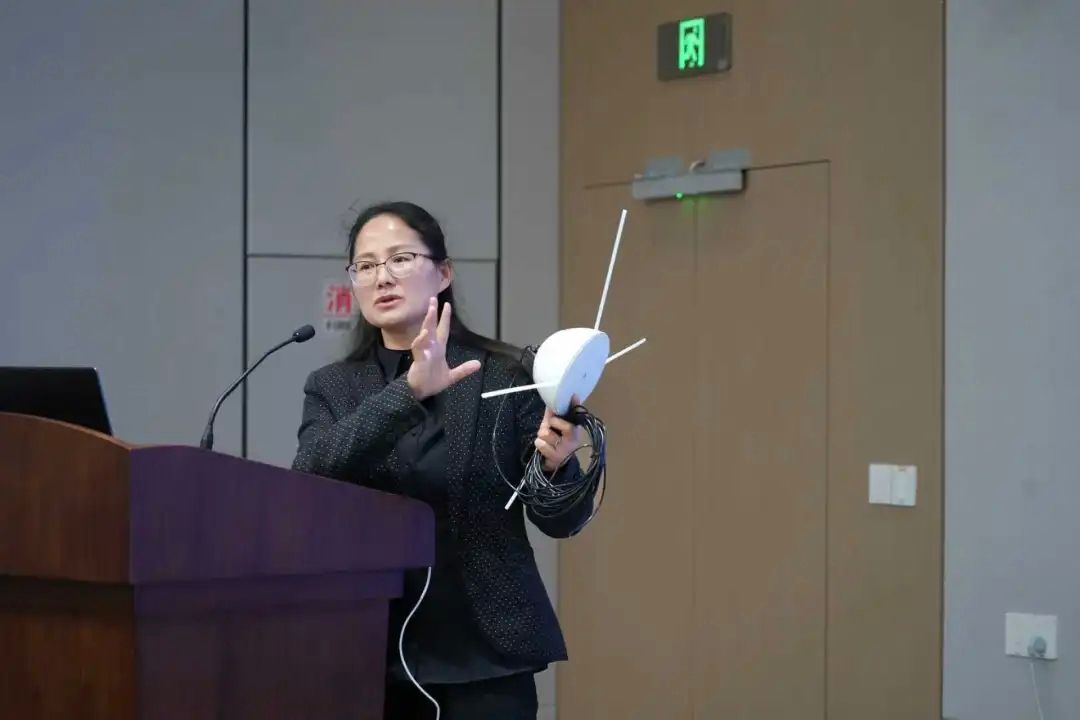 王春芳教授展示团队研发的摄食传感器。晏华华 摄