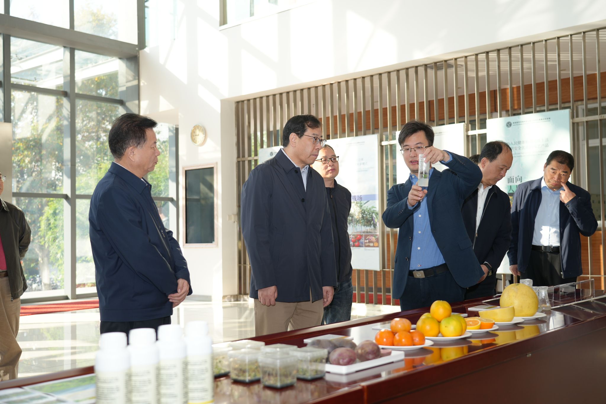 黄思光一行调研果蔬园艺作物种质创新与利用全国重点实验室,徐强教授介绍相关情况(记者 晏华华 摄)