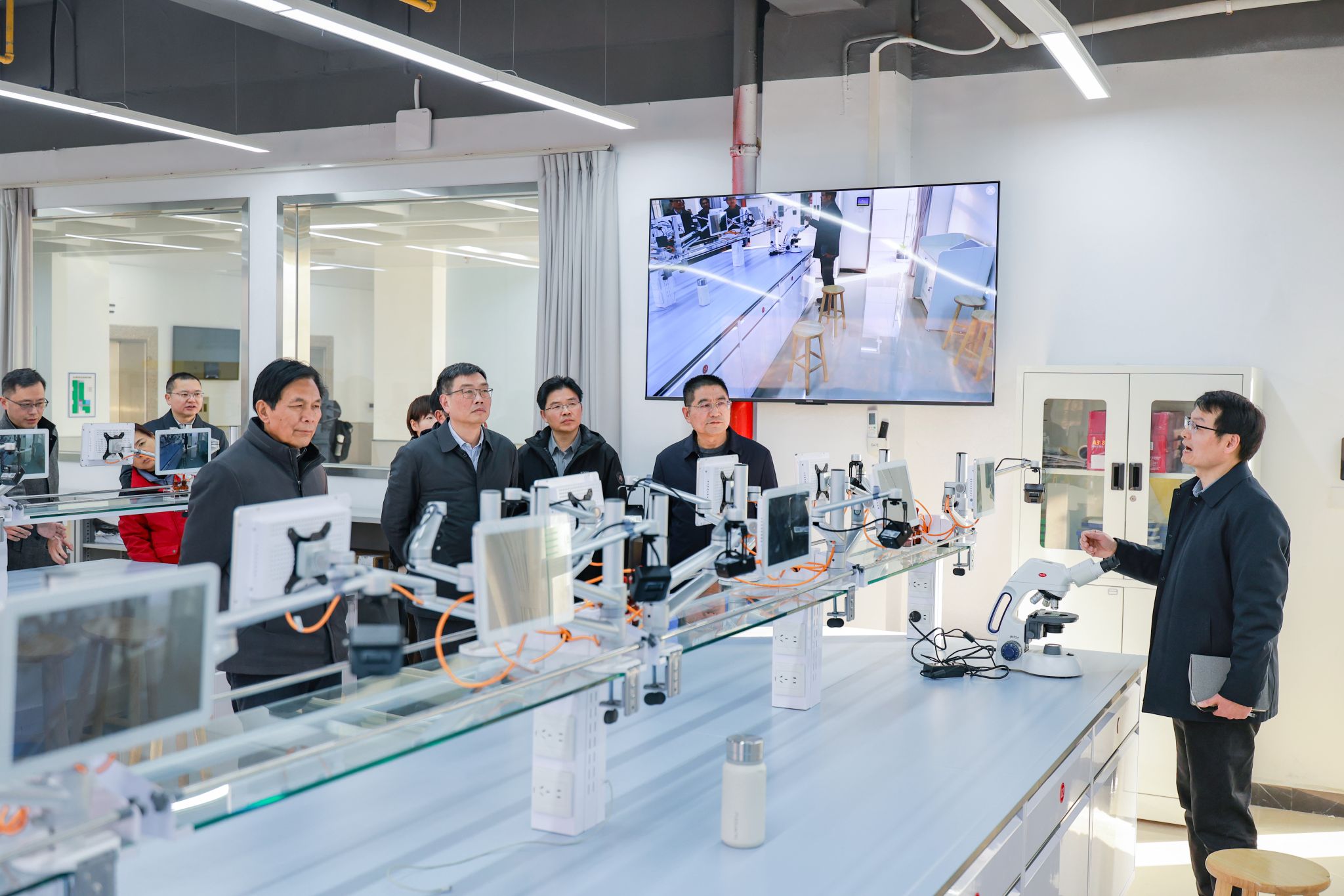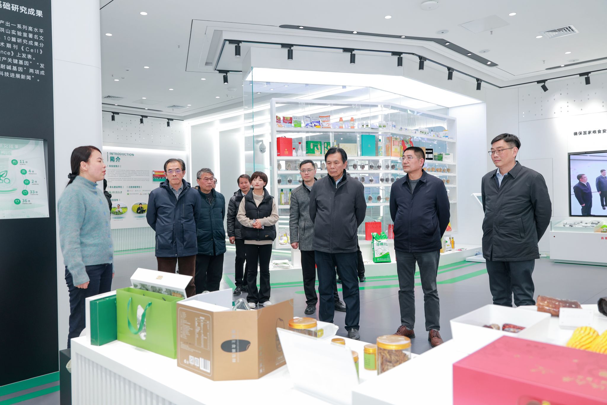 余毅一行参观了生猪健康养殖省部共建协同创新中心、湖北洪山实验室、果蔬园艺作物种质创新与利用全国重点实验室、逸夫楼基础实验教学平台,拜访了陈焕春院士、张献龙院士及相关专家。