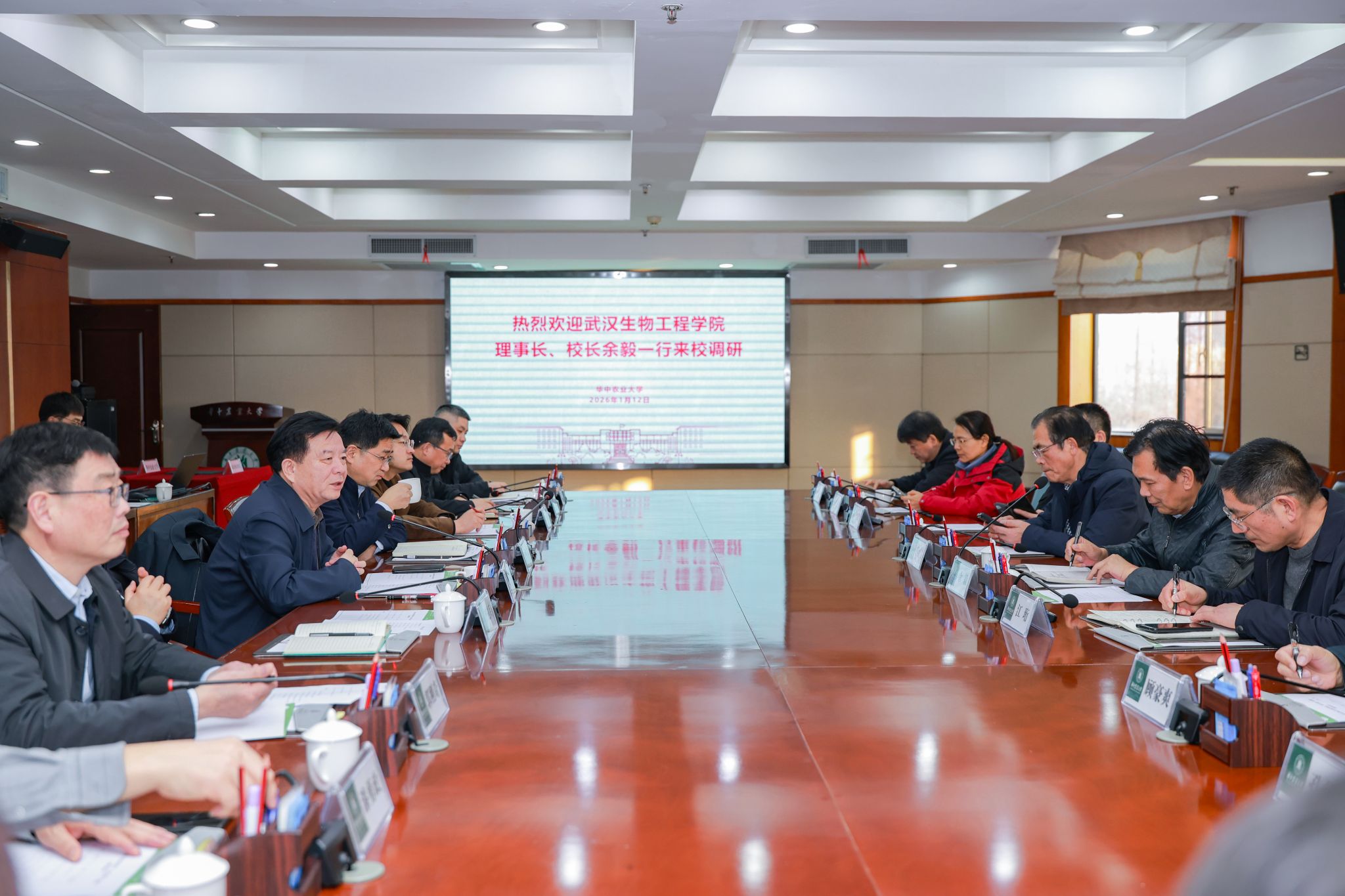 余毅对学校的热情接待和长期支持表示衷心感谢,他回顾了华中农业大学在武汉生物工程学院不同发展阶段给予的关键性、全方位的支持。他表示,此次调研既是感谢之旅,也是学习之旅、寻求支持之旅,他期望华中农业大学能在党建与思政工作、学科专业与师资队伍建设、人才培养、科学研究与社会服务等方面继续提供对口支持,助力武汉生物工程学院提升办学水平,实现高质量发展。