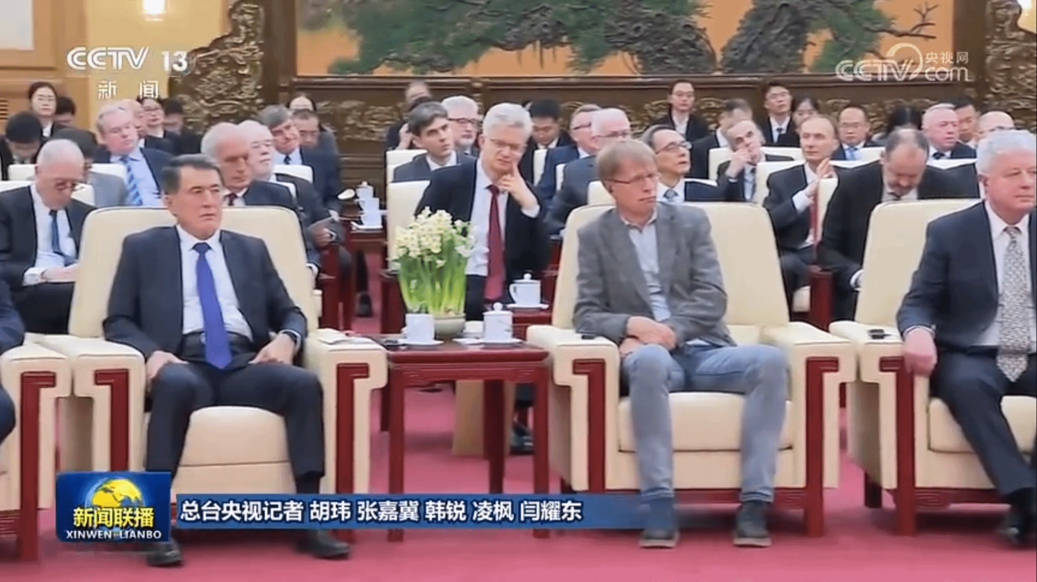 ▲罗伯特·摩根·拉肯教授(二排左三)受邀参加国务院总理李强同外国专家新春座谈会(《新闻联播》截图)