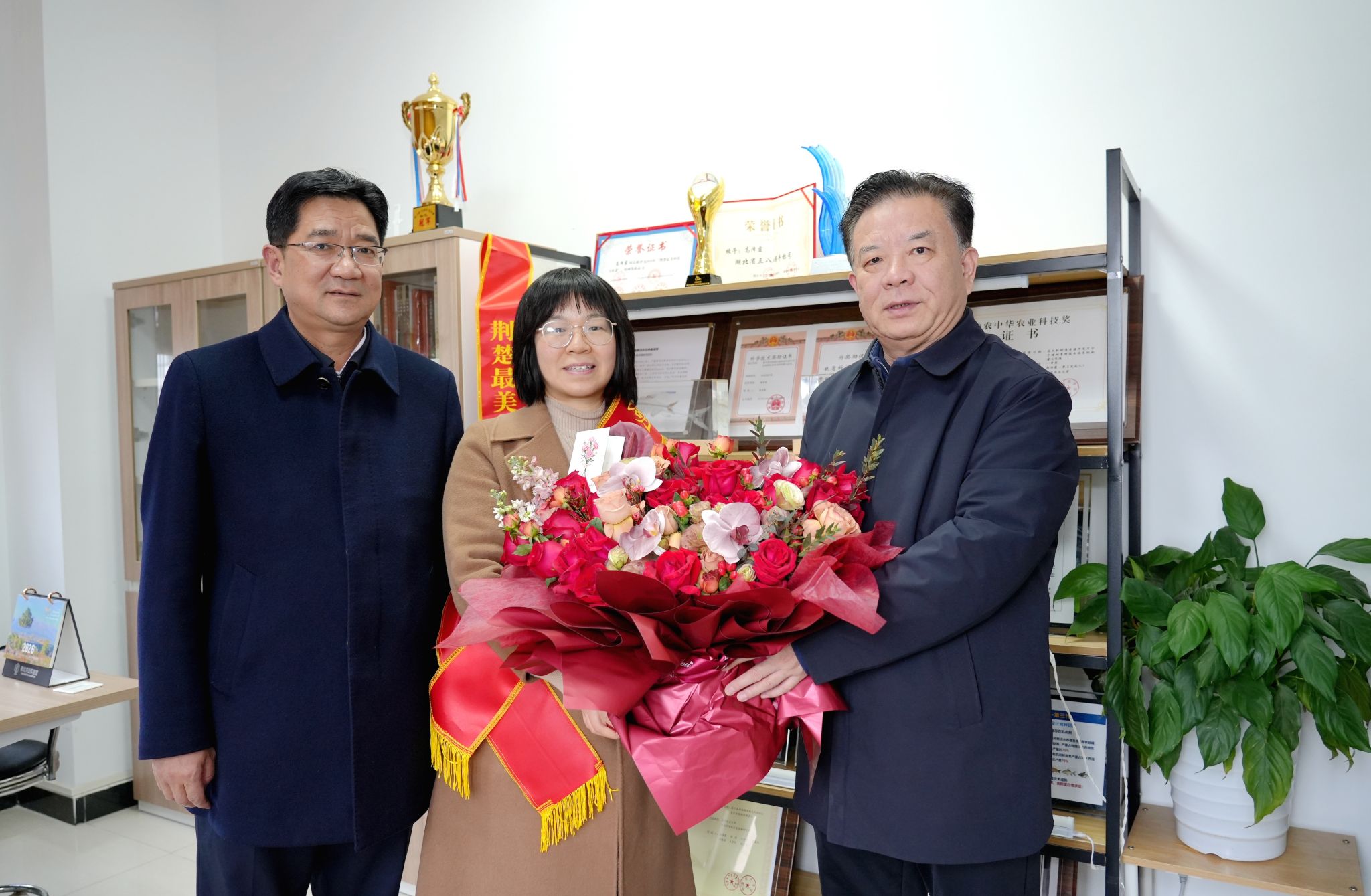 姚江林对赵书红院士为学校事业发展贡献的巾帼力量表示诚挚感谢,对高泽霞教授获评“湖北省三八红旗手”荣誉称号表示祝贺,希望她们“巾帼不让须眉”,发挥“领头雁”作用,坚持“四个面向”战略导向,凝聚力量建设高水平创新团队,整合资源搭建高能级科研平台,深化合作联动行业龙头企业,全力攻克“卡脖子”技术难题,创造更多服务国家战略和区域经济社会发展的重大标志性成果。