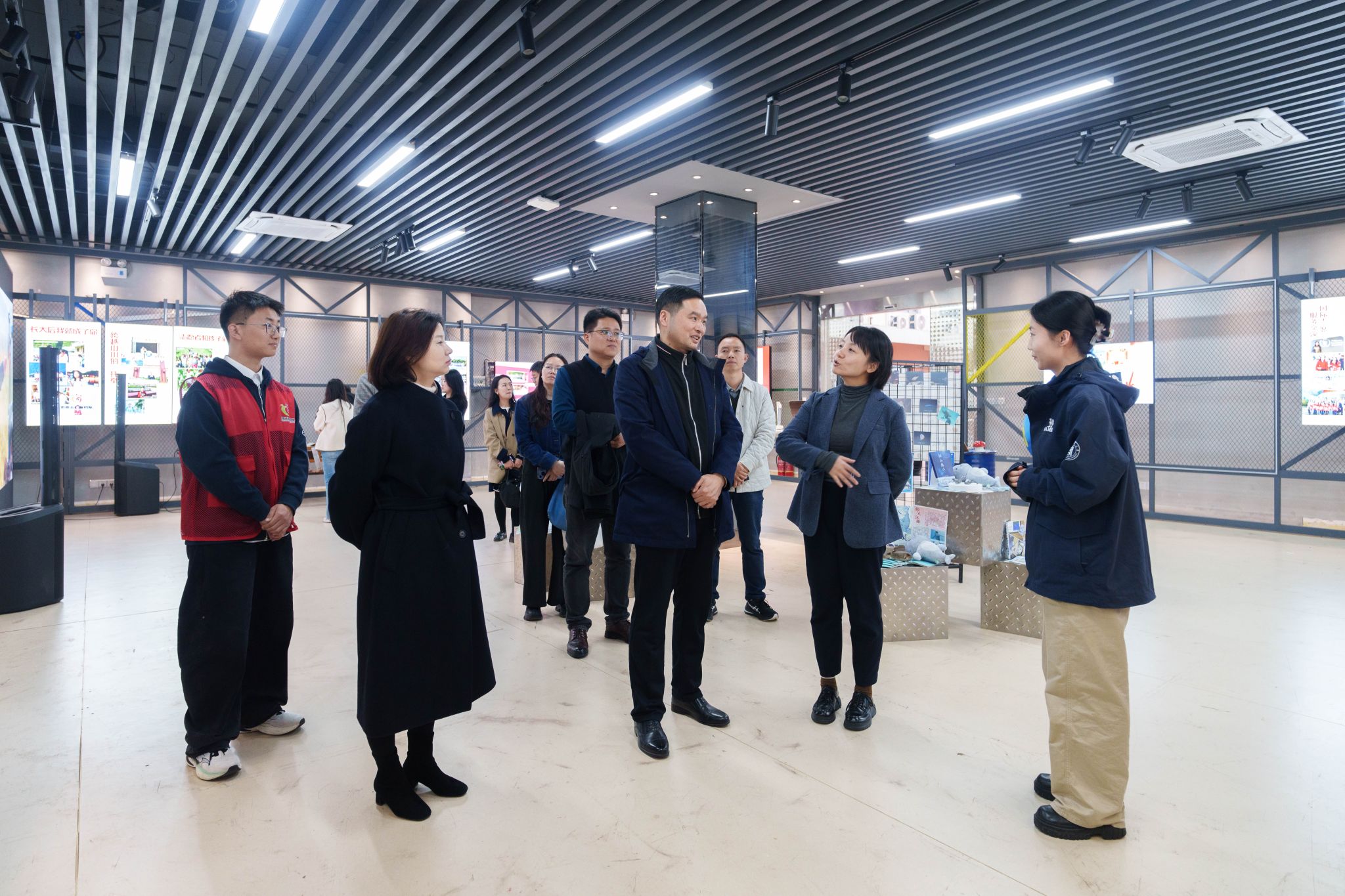 参观华中农业大学本禹志愿服务队展厅(学通社记者 韩鑫垚 摄)