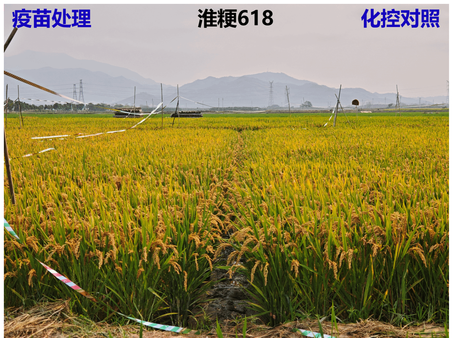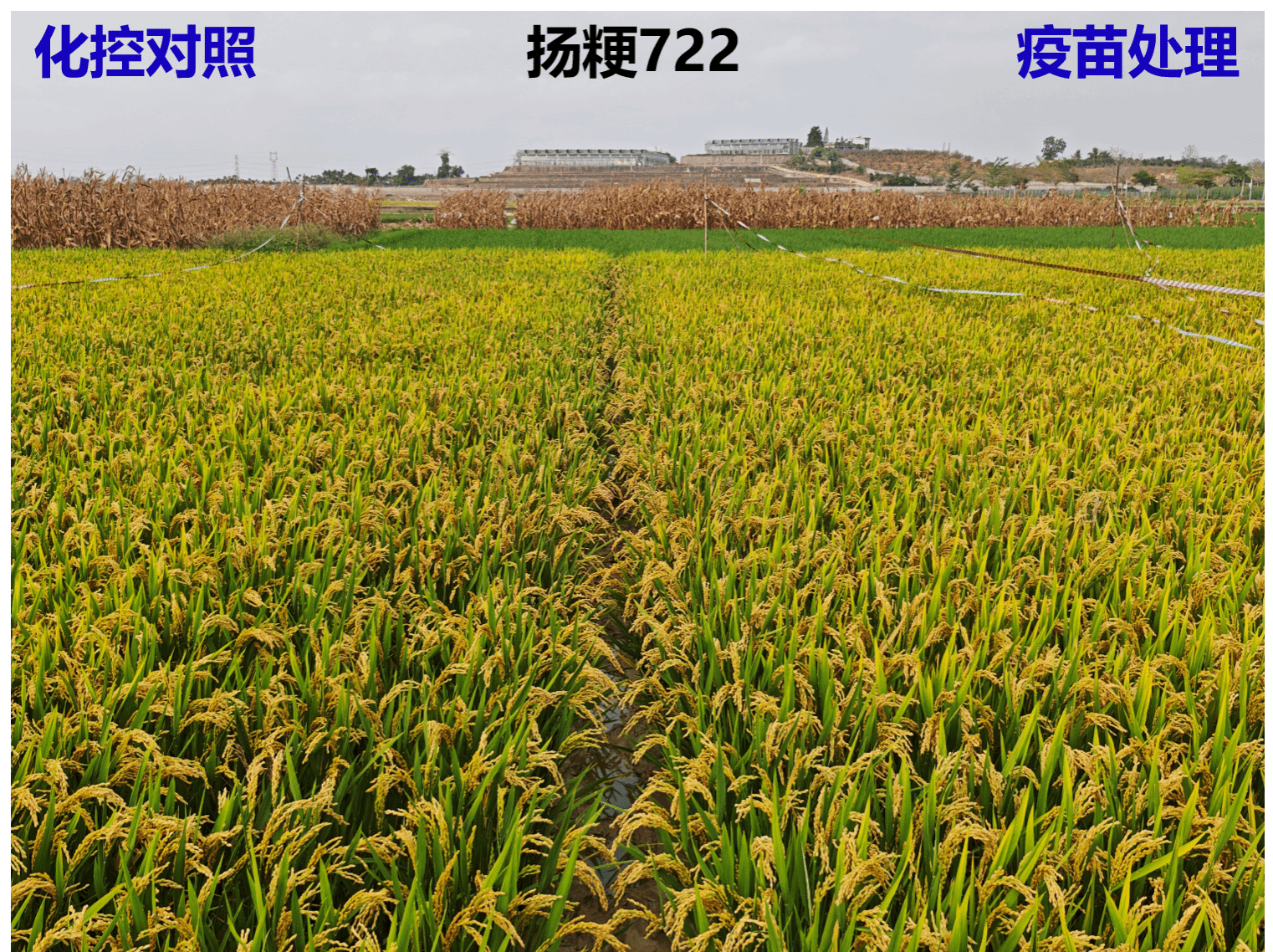 与会人员在华中农业大学海南研究院就植物疫苗应用技术进行了深入交流和探讨。姜道宏教授详细介绍了植物疫苗的研制历程、促生抗病作用机理以及多年多地试验示范效果。2010年,团队在国际上首次发现真菌DNA病毒SsHADV-1,SsHADV-1可以将毁灭性病原真菌核盘菌转变为油菜的内生真菌,且携带SsHADV-1的核盘菌也可在水稻上内生生长,具有抗病增产效果。基于此,团队创制了真菌病毒介导的植物疫苗制剂,构建了“真菌病毒介导的植物疫苗诱导作物防病抗病、促进增产增效绿色技术”,在湖北、江苏、云南、黑龙江等多个省份进行了多年田间试验示范,取得了显著的成效。随后,淮安市农业科学院赵晨助理研究员就植物疫苗在示范区水稻上的应用效果进行了详细介绍,相比对照,植物疫苗处理组水稻植株更高,根系更加发达,分蘖数和有效穗数显著增多,成熟期明显提前,抗病增产效果明显。