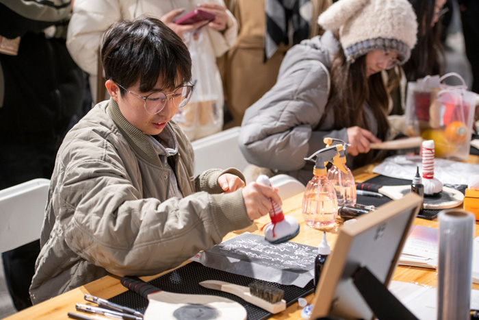 同学参与拓印体验活动。刘涛摄
