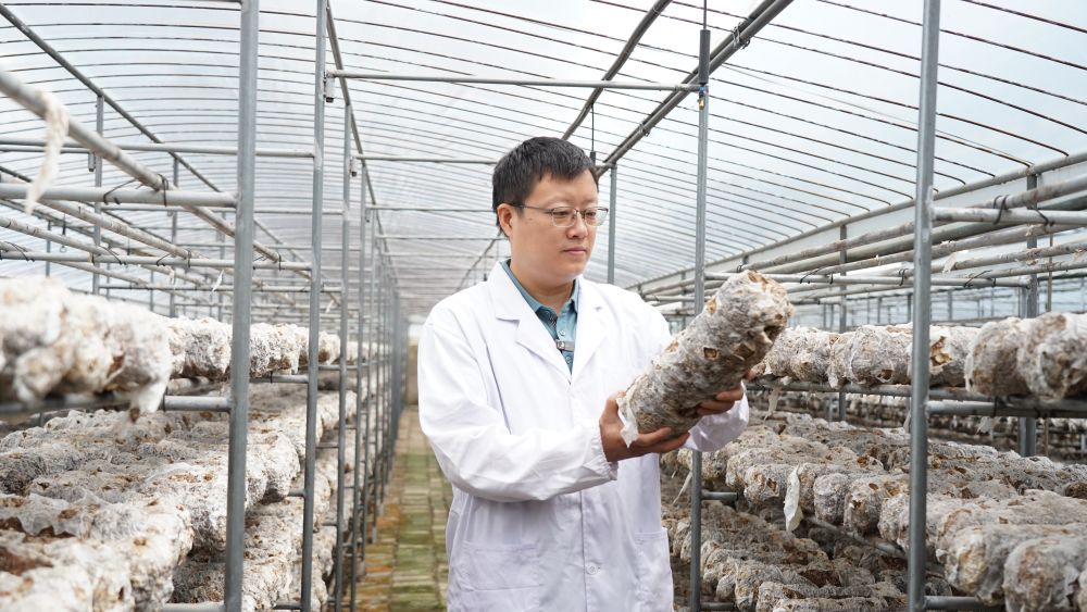 试验基地里,湿润的空气中弥漫着独特的菌香。黄天骥蹲下身,专注地翻看菌棒的生长状况。而他手机屏幕上不断闪烁的技术咨询消息,恰似播撒的菌种,在乡村振兴的广袤沃土上,悄然萌发、茁壮成长。这位扎根山野的“菇”勇者,正用科技的力量,续写着“一朵菇”带动一方富的动人篇章。