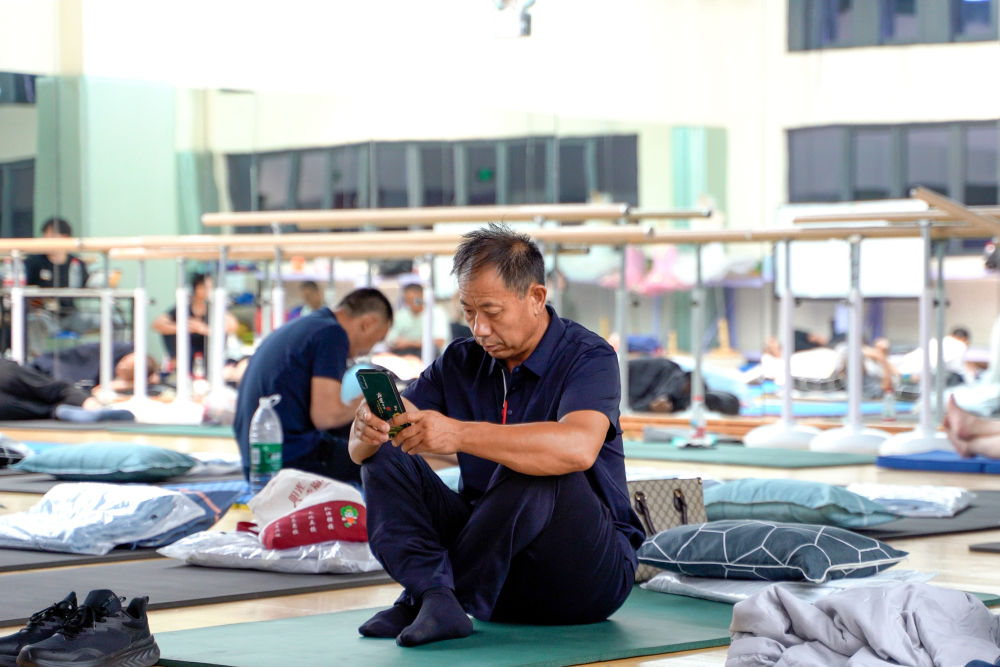 新生家长在体育馆内休息。新华社发(区志朗 摄)