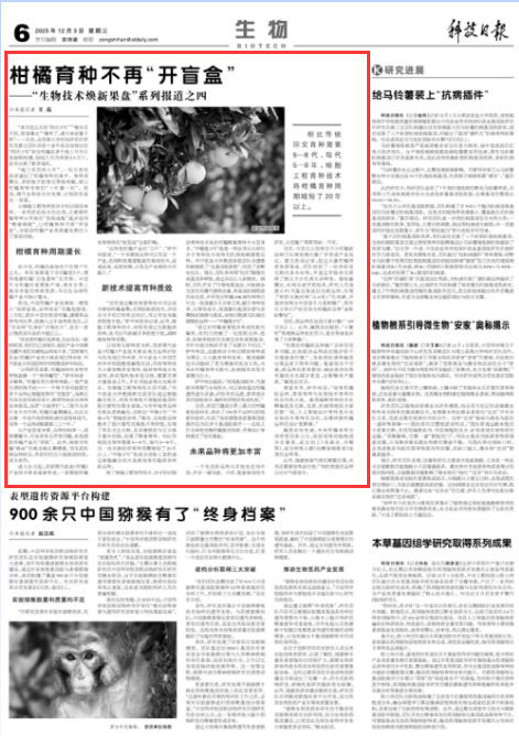 目前,我国已建成世界上最大的柑橘愈伤组织库,保存了100多个品种的胚性愈伤组织;完成了包括甜橙高质量基因组测序在内的多个基因组测序……这些工作为深度挖掘柑橘基因资源、开展设计育种奠定了坚实基础。