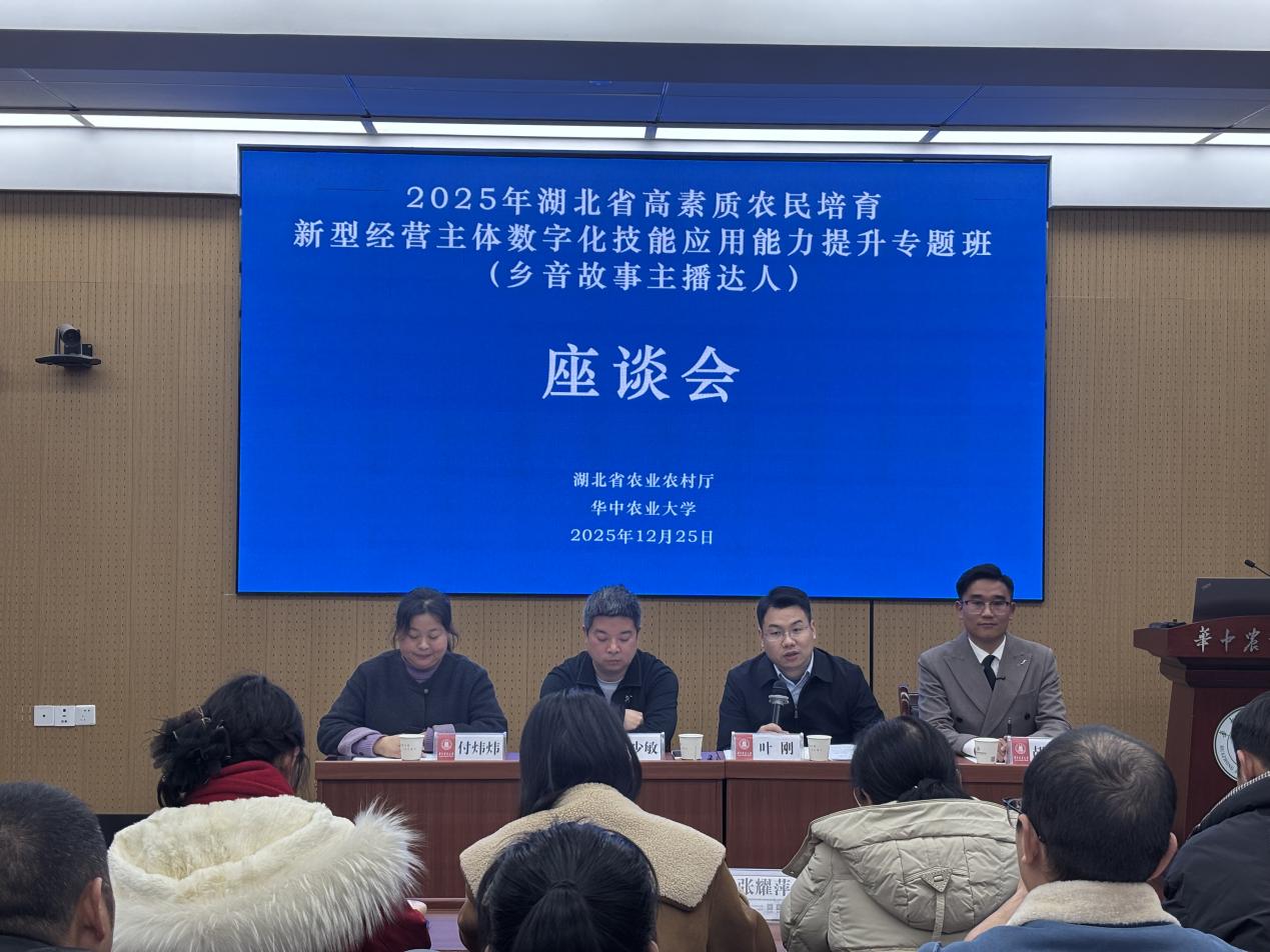 在数字化浪潮奔涌的今天,乡村不仅需要会种地的行家里手,也需要会传播的数字能人。2025年11月-12月,湖北省农业农村厅主办,华中农业大学承办了“湖北省高素质农民培育新型经营主体数字化技能应用能力提升专题班(乡音故事主播达人、乡村带货能手)”,课程涵盖直播内容策划、直播运营技巧、视频剪辑等,通过“理论精讲+实操演练”的模式,让学员学以致用,着力培育一批懂政策、会传播、能带货的乡村振兴骨干队伍,讲好荆楚故事,推广湖北好物,共同破解乡村发展难题。