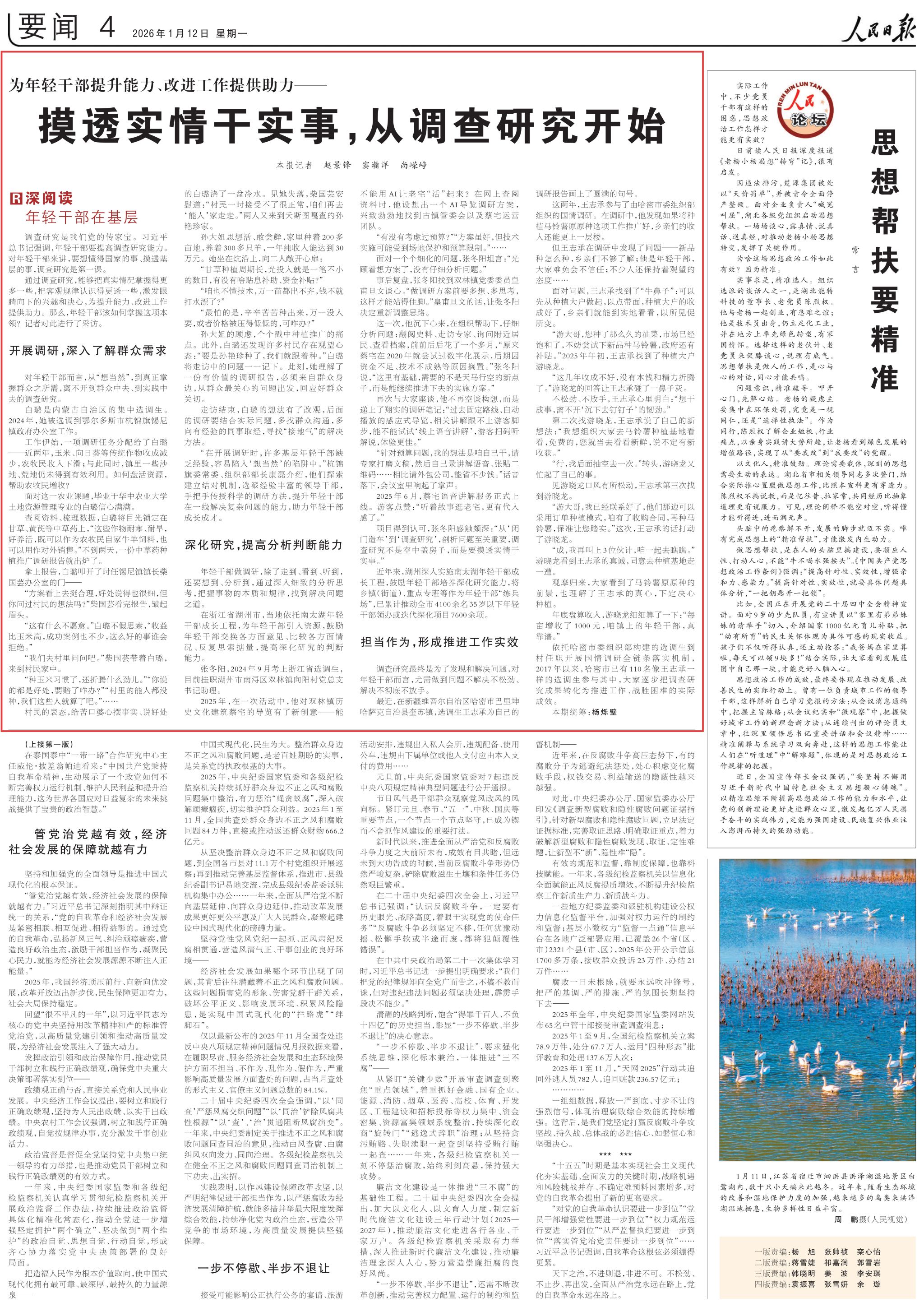 (深阅读·年轻干部在基层)调查研究是我们党的传家宝。习近平总书记强调,年轻干部要提高调查研究能力。对年轻干部来讲,要想懂得国家的事、摸透基层的事,调查研究是第一课。