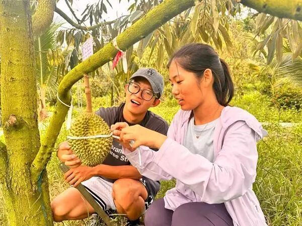 从一名青涩的青年学生成长为对榴莲习性如数家珍的“土专家”,于天祥的皮肤晒黑了,笑容却更爽朗了。他笑称,“哪里有需要,哪里就有科技小院的师生们。”