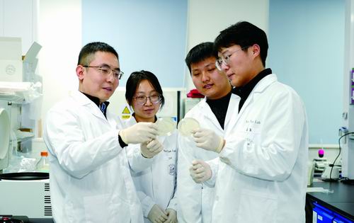 颜彦(左一)与团队成员。华中农大供图