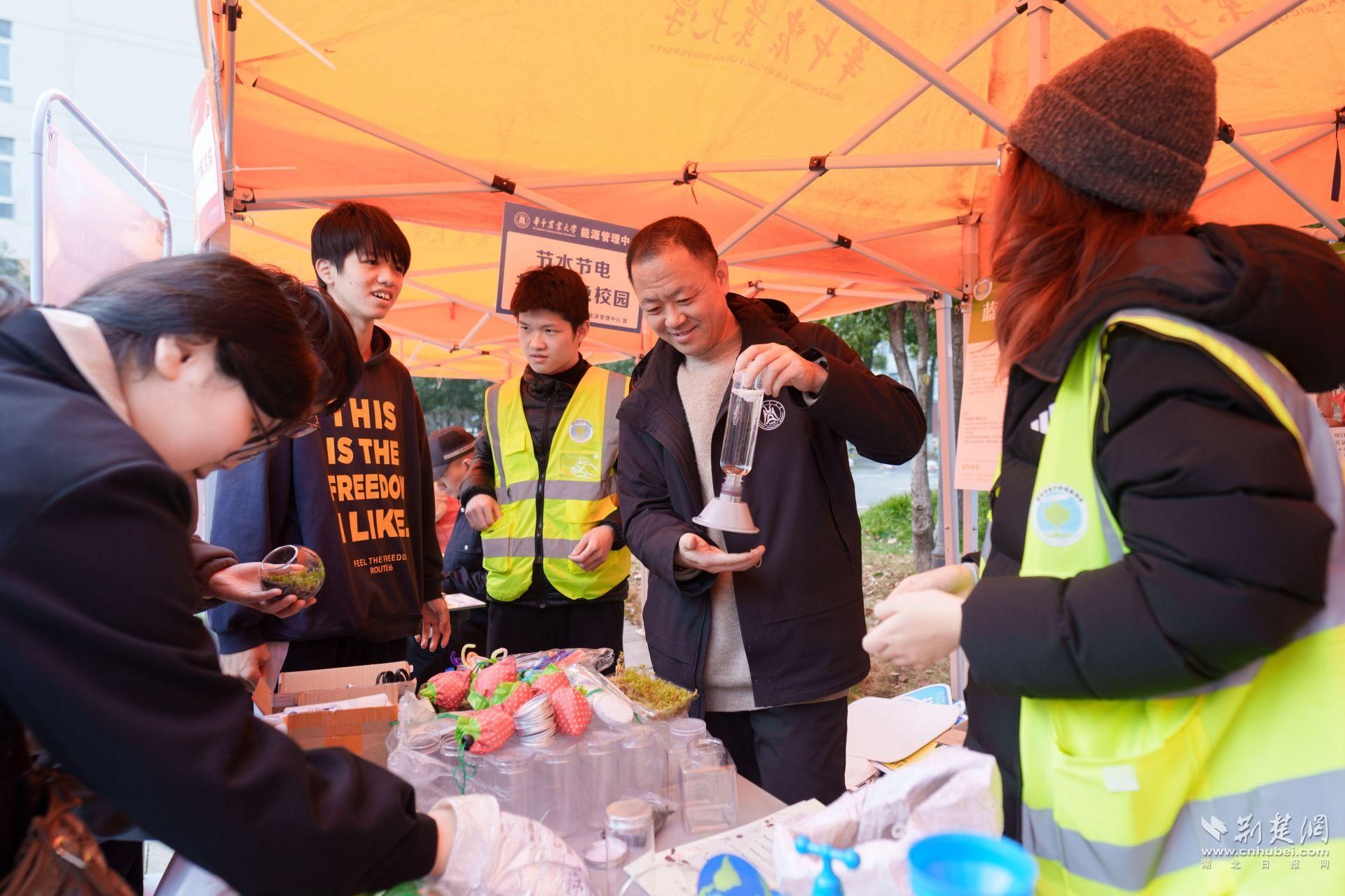 在“绿色校园”专区,学校能源管理中心的魔法水龙头实验和绿色协会的“‘池’之以恒”电池回收项目吸引了不少同学动手体验。志愿者们模拟污水净化过程,详细讲解废旧电池对环境的危害,并指导大家利用废弃塑料瓶制作精美漂流瓶,书写环保寄语,让绿色低碳理念在指尖传递。