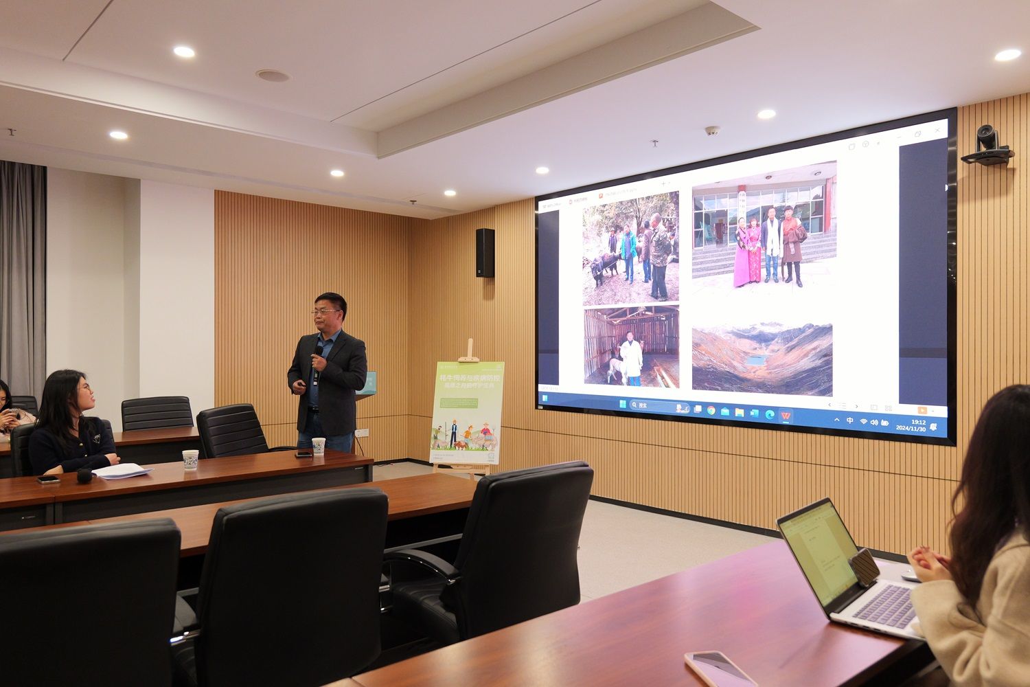 南湖新闻网讯(通讯员 武安然 陈鸿霞)11月30日晚,以“牦牛饲养与疾病防控:高原之舟的守护宝典”为主题的学术晚茶活动在第四综合楼D207举行。动物科学技术学院、动物医学院李家奎教授分享了他的援藏经历,并同研究生们就牦牛的饲养与疾病防控问题进行了交流。