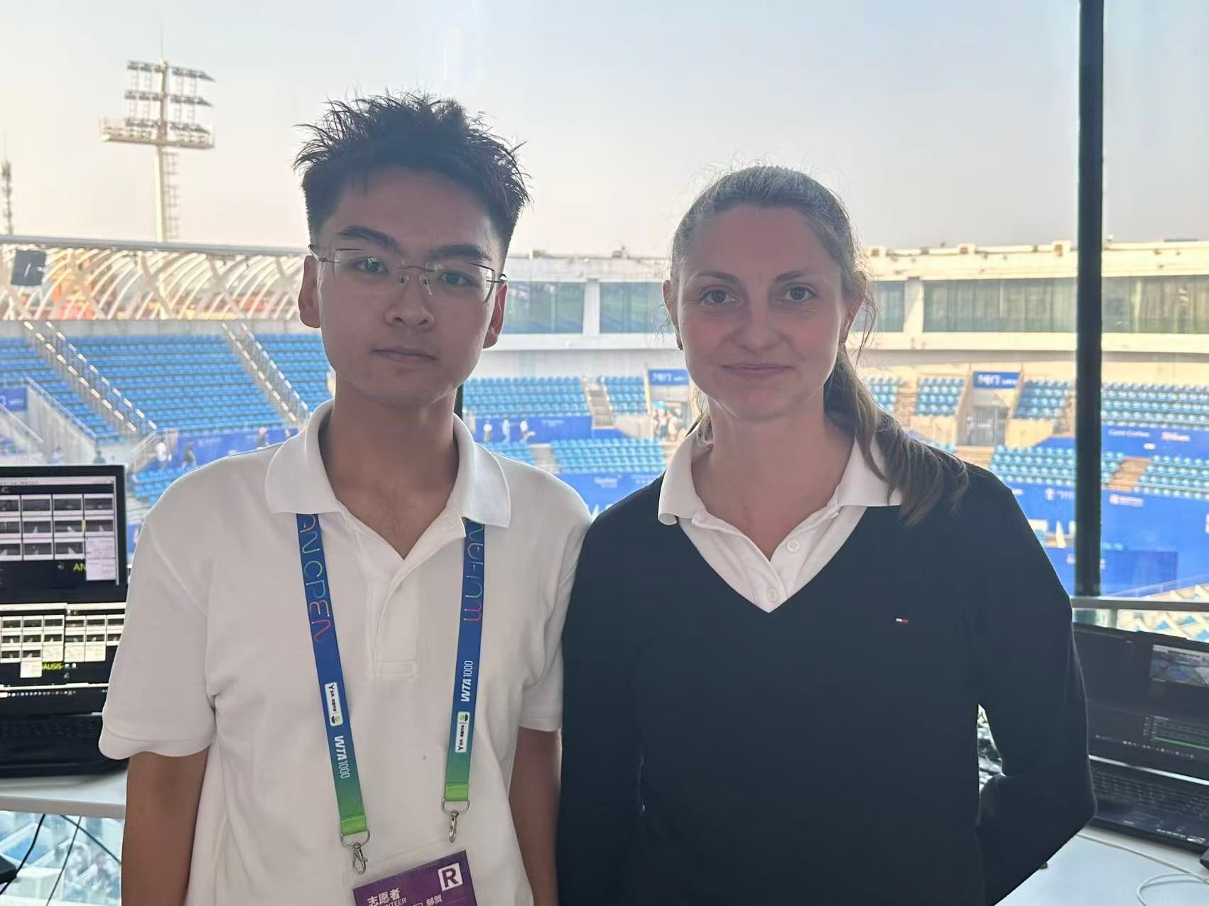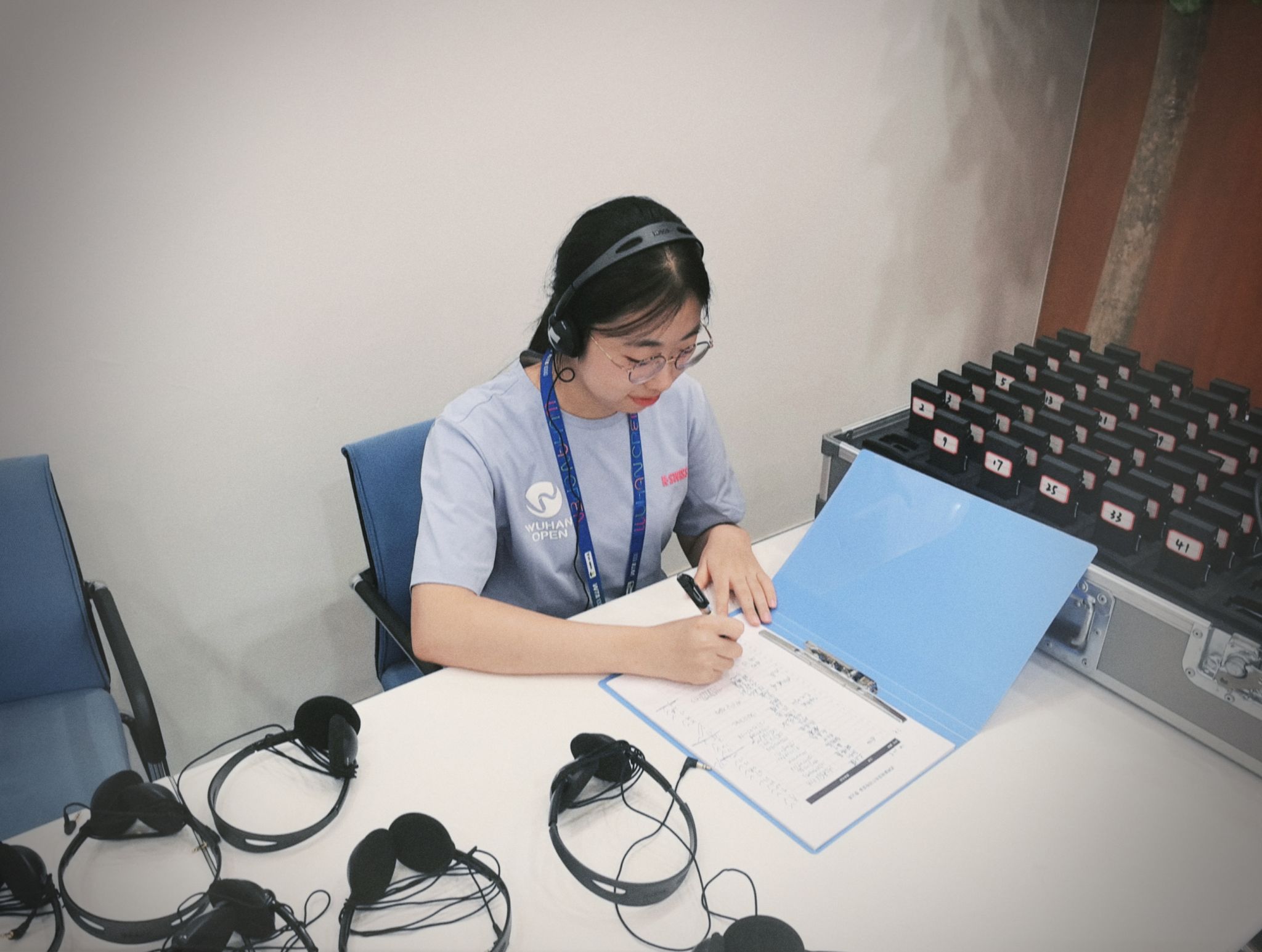 “我们的工作内容非常充实”,电视转播助理组组长、外国语学院英语2301班郁贺说,他们不仅要协助鹰眼、即时计分、电视转播等国际专业团队与中方技术人员进行对接,提供精准的专业翻译,更要统筹不同场次的人员调度与任务衔接。