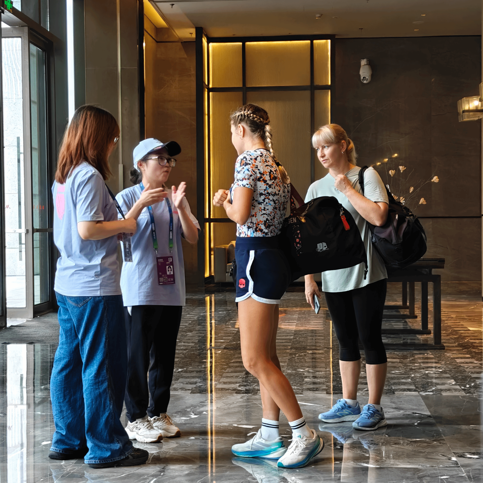 “投入其中之后,我才意识到它真正的分量。”在阮莉啦心中,这份“分量”不仅在于零差错的时间把控与路线指引,更在于她深知,自己每一次精准的指引,都在为球员节省宝贵的备赛时间,自己每一个温暖的微笑,都可能缓解他们远道而来的疲惫与赛前的紧张。“我们传递的不仅是方向,更是武汉的温度与武网的专业。”从最初按图索骥的生涩,到后来对调度流程了如指掌的从容,阮莉啦在点滴服务中,掂量出了岗位的责任,也收获了成长的重量。他们也会担任翻译,准确及时地传达信息,确保沟通交流无障碍,让球员感受到武汉网球公开赛的专业和用心。