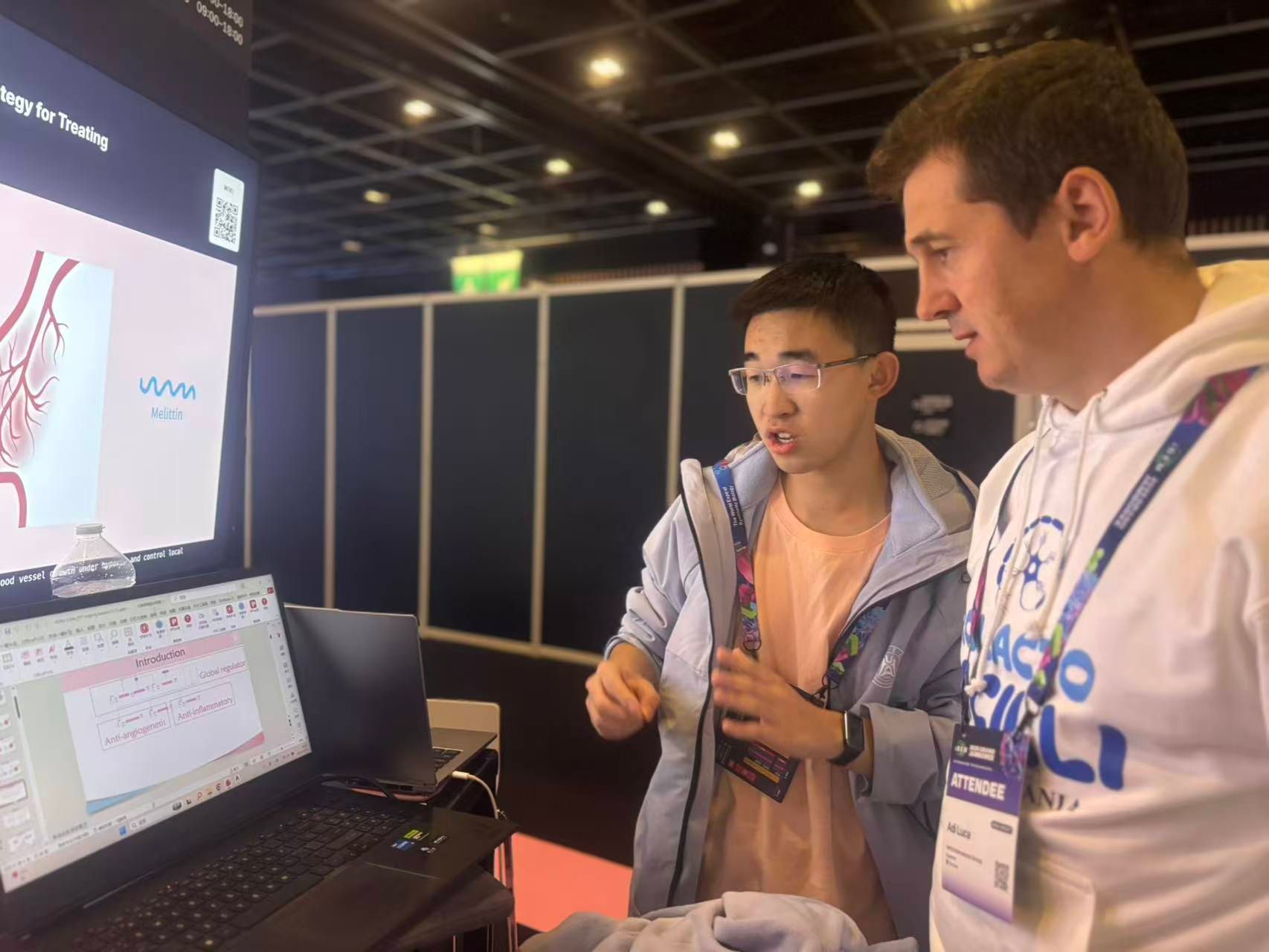 团队在参赛时向其他参赛队伍介绍团队成果(iGEM团队 供图)