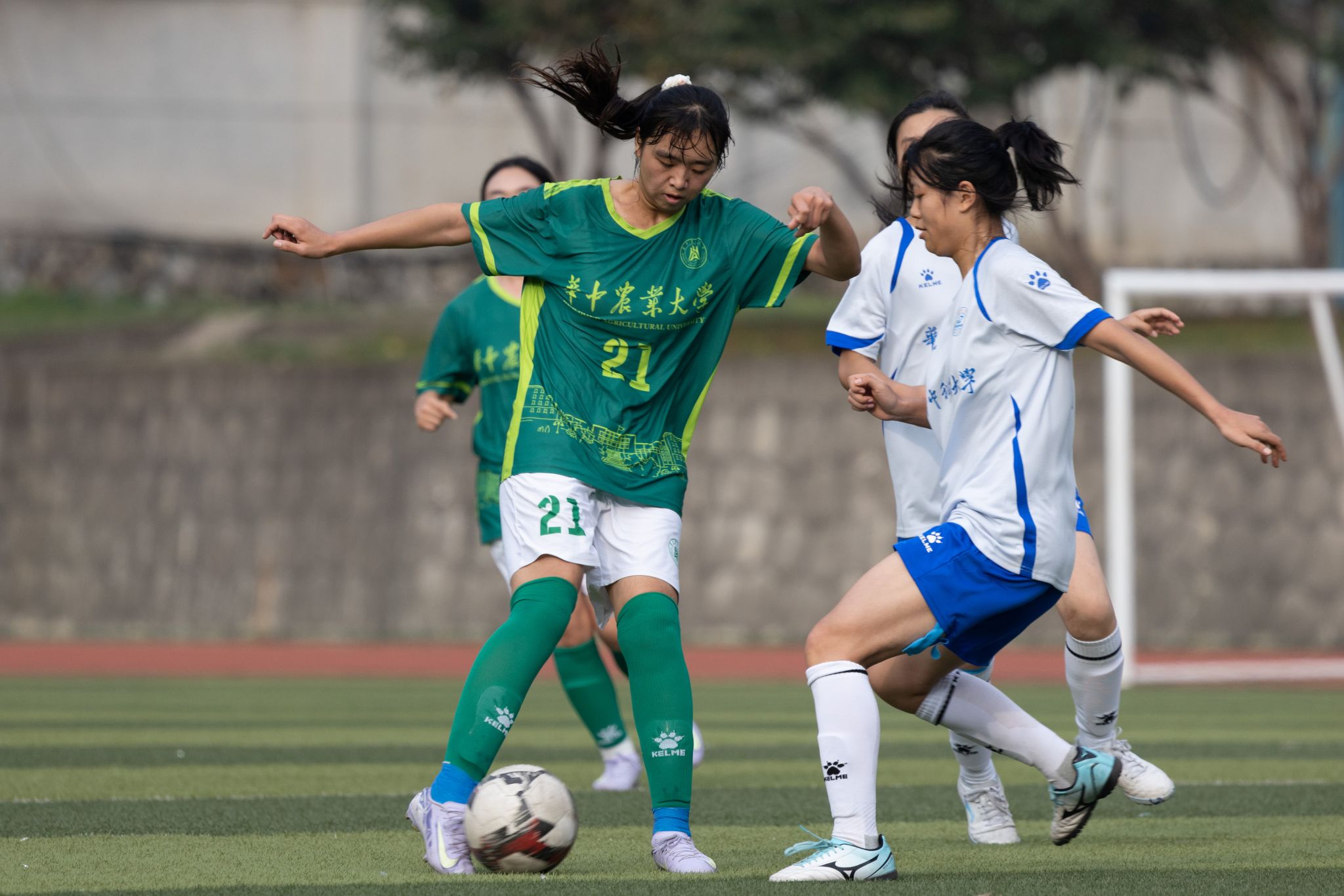 比赛的平衡在第16分钟被打破。华中科大女足获得角球机会,3号球员将来球垫入球网,0:1,华中农大女足暂时落后。