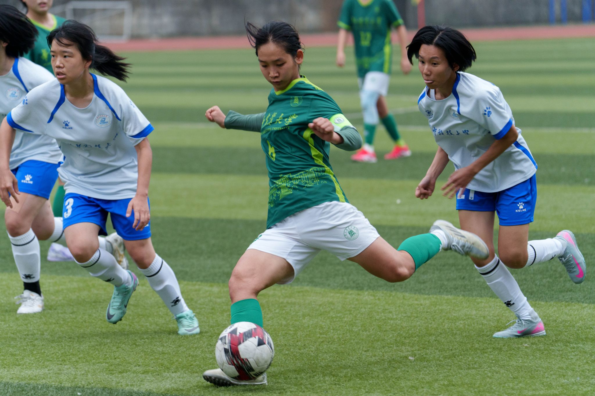 ▲5号雷雨馨带球突破防线(学通社记者 刘博文 摄)