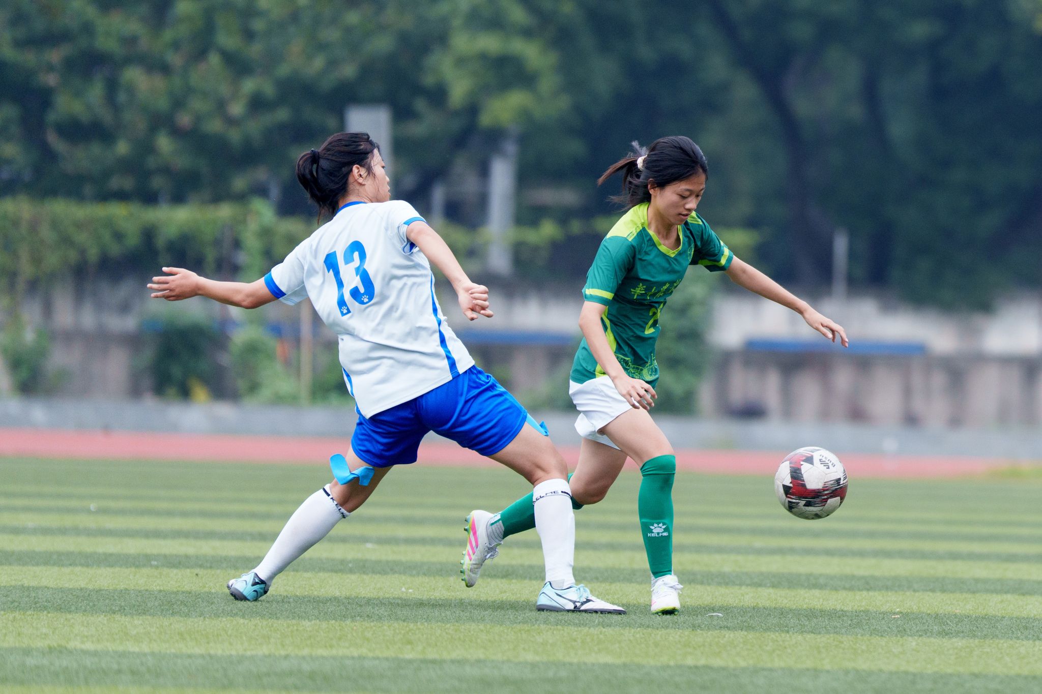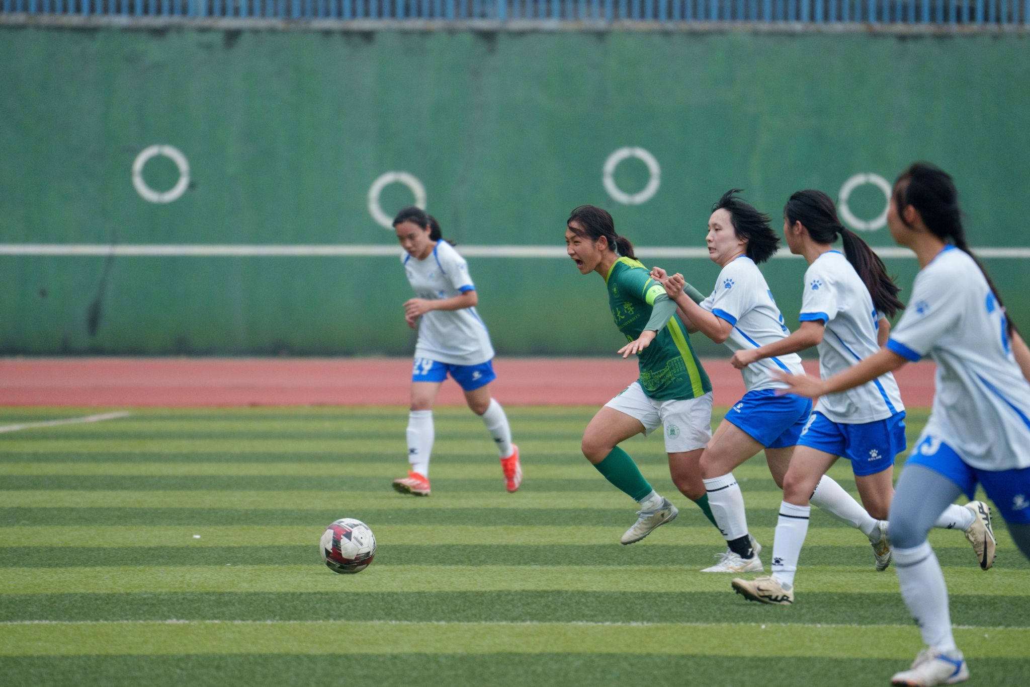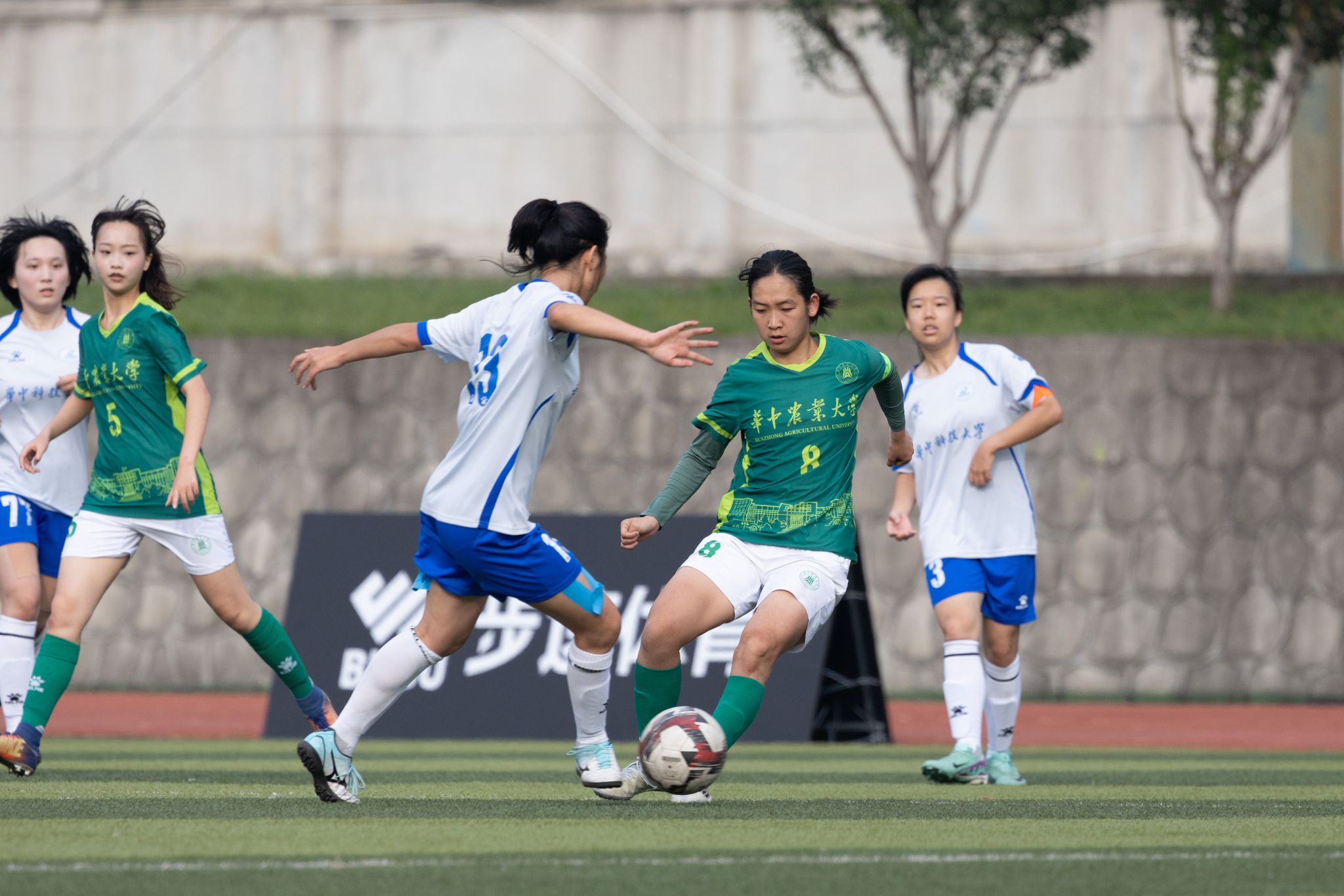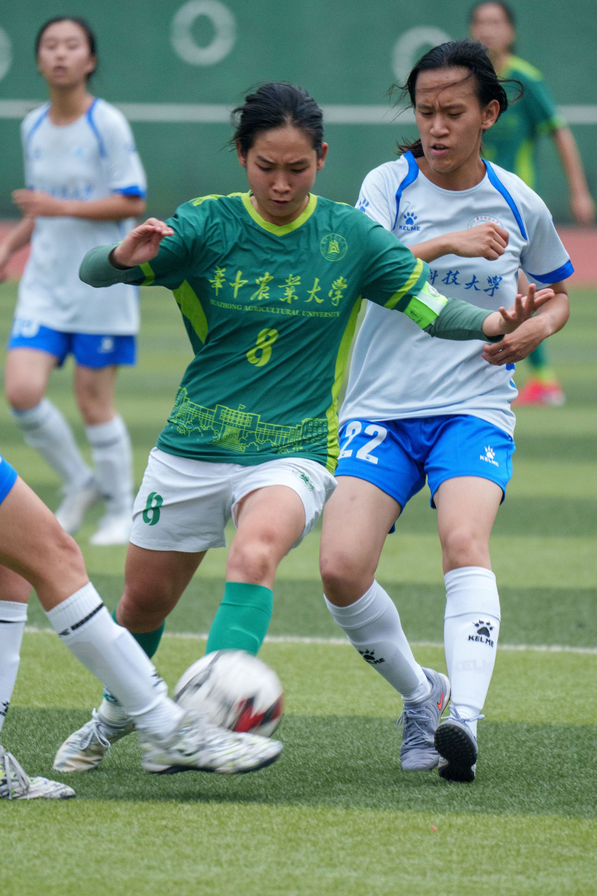 比赛开始,双方便在中场展开争夺。华中农大女足通过大范围跑动,对华中科大女足实施了有效的人盯人防守与区域协防,坚决切断其向锋线输送炮弹的传球线路。