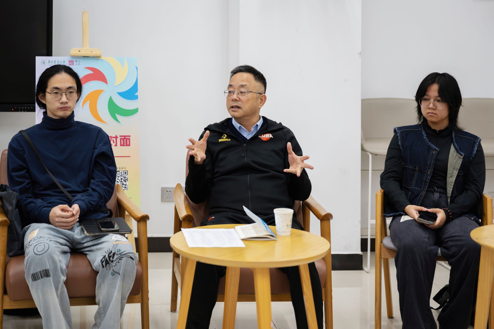 青平与同学们交流(学通社记者 谭若煐 摄)