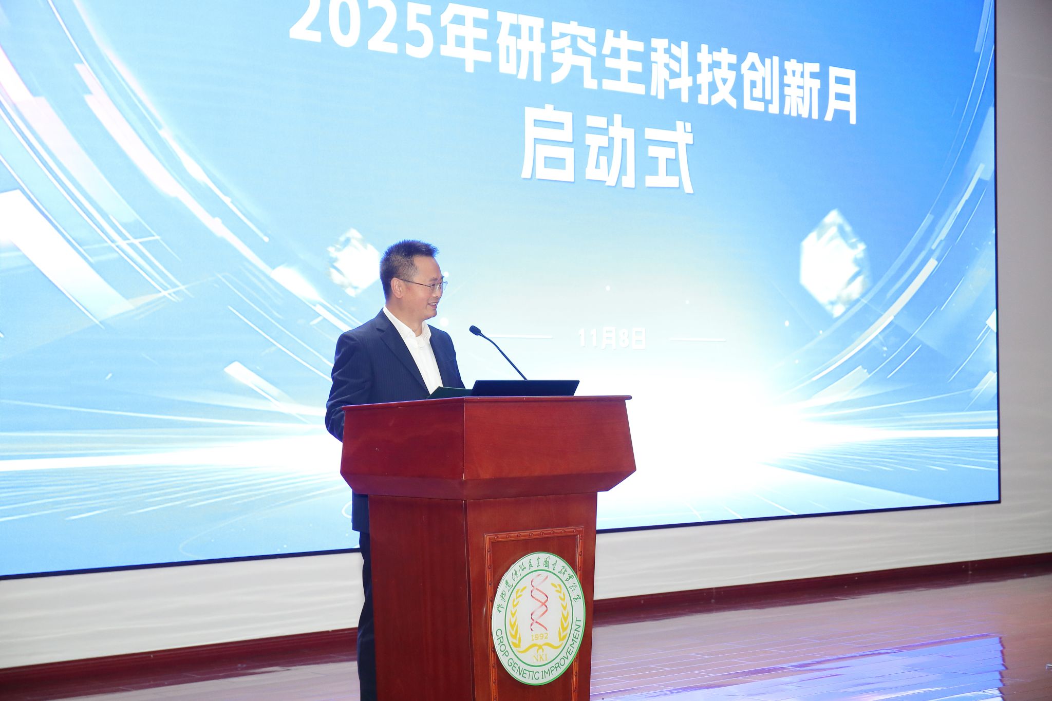 启动式上,李大鹏以“闯”“创”“新”三个字勉励学生。他强调,“闯”意味着敢于质疑权威、打破壁垒,勇于闯基础研究的深水区、国家战略的关键区,进而提出新理论、开辟新方向;“创”的价值在于让科技创新服务社会、造福人民,因此既要有瞄准前沿的战略眼光,也要有务实笃行的责任担当;“新”并非单一维度的突破,而是跨学科融合、颠覆性创新的大格局,既要立足农业、传承优良作风,也要主动拥抱技术变革、学好新本领,为农业插上科技的翅膀。