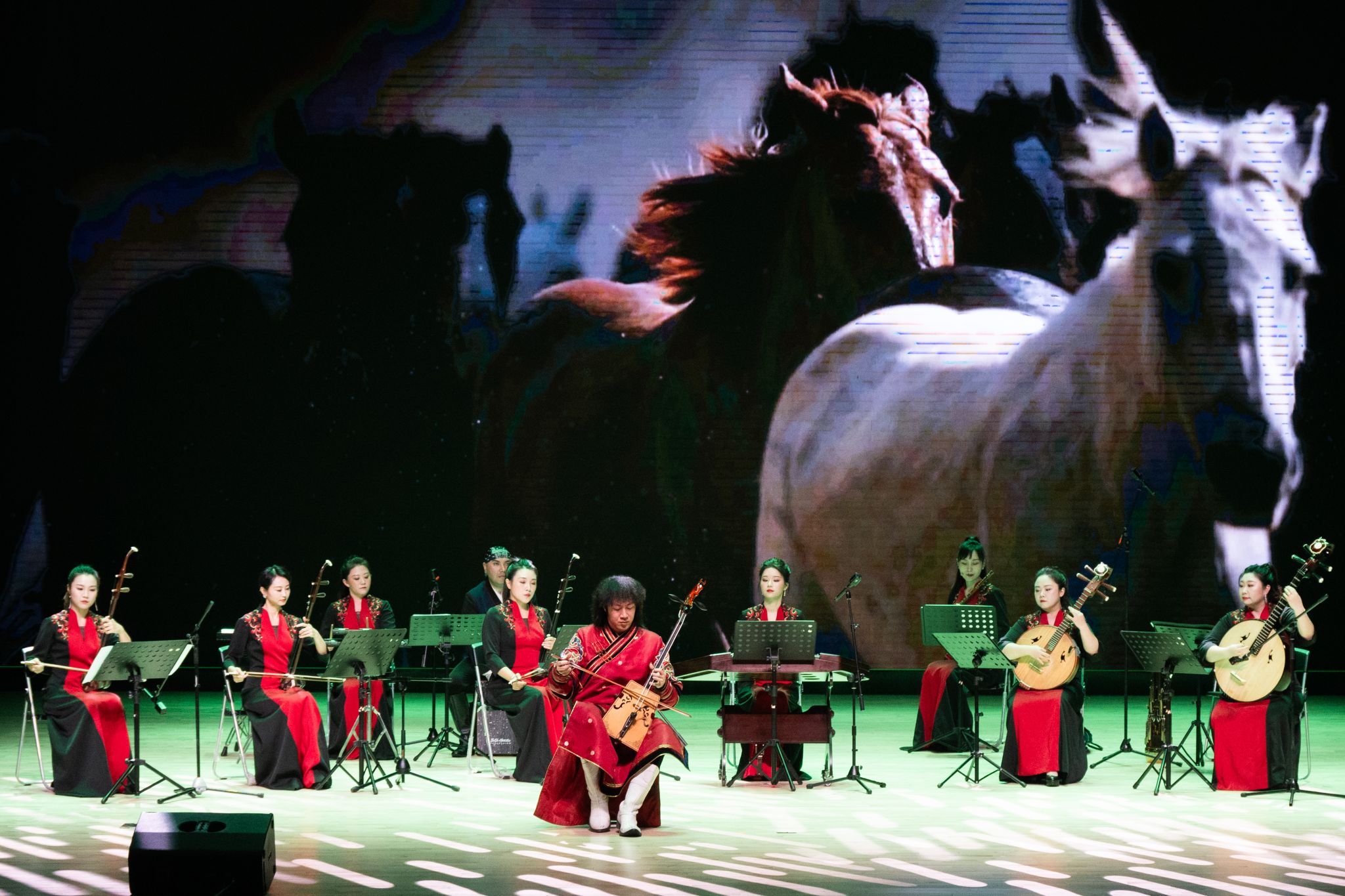 二胡齐奏《新赛马》节奏渐促,弦音模拟马蹄疾奔、马群嘶鸣,像千匹烈马撞开风,气势磅礴,感染力极强,尽显草原奔马的豪迈与力量。