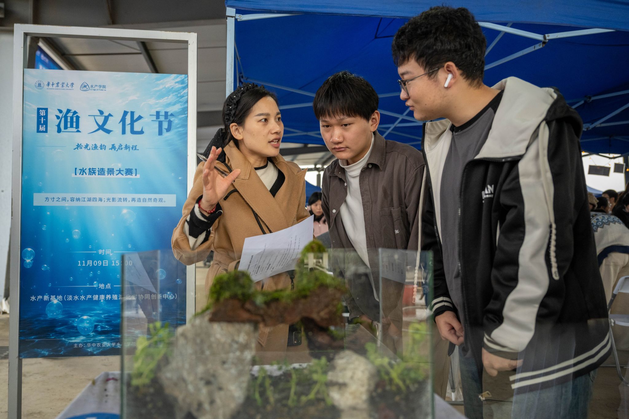南湖新闻网讯(学通社记者 张婉怡 唐欣怡 方庆琳 张瑜嘉)11月9日,以“拾光渔韵·再启新程”为主题的华中农业大学第十届渔文化节,在校内水产教学科研基地举行。本次活动包含水族造景大赛、趣味活动区、全鱼宴、垂钓大赛、文创作品展示区和十周年回顾区六大板块。