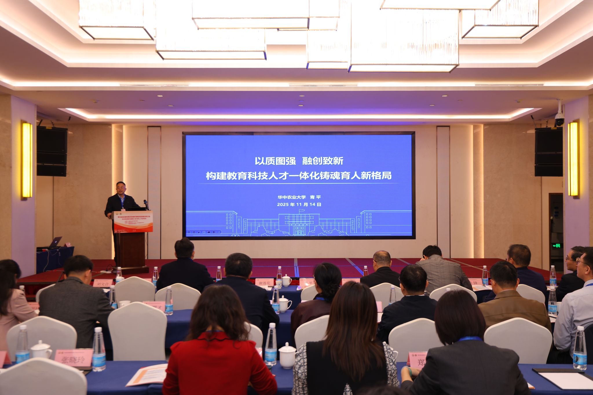 在主旨报告环节,我校副校长青平以“以质图强 融创致新——构建教育科技人才一体化铸魂育人新格局”为题,系统阐释了高质量课程思政建设的发展思路与实践路径。他围绕当前课程思政工作面临的挑战,强调从引导教师“研”思政、教育学生“悟”思政、强化实践“耕”思政、场景驱动“拓”思政、善用AI“融”思政等五个方面系统建立课程思政建设方案。他以华中农业大学课程思政改革实践为例,从落实立德树人根本任务践行新使命、构建“农味”思政育人新格局、制定促进学生自由全面发展新方案、搭建全场域育人新平台、开设耕读思政新项目、探索分类培养新模式、创设人才培养新特区、建设多元协同育人新机制、培育教师课程思政新能力、涵育大学育人新文化等十个方面,全面介绍了学校在推进课程思政内涵式建设方面的深入探索与教学实践。