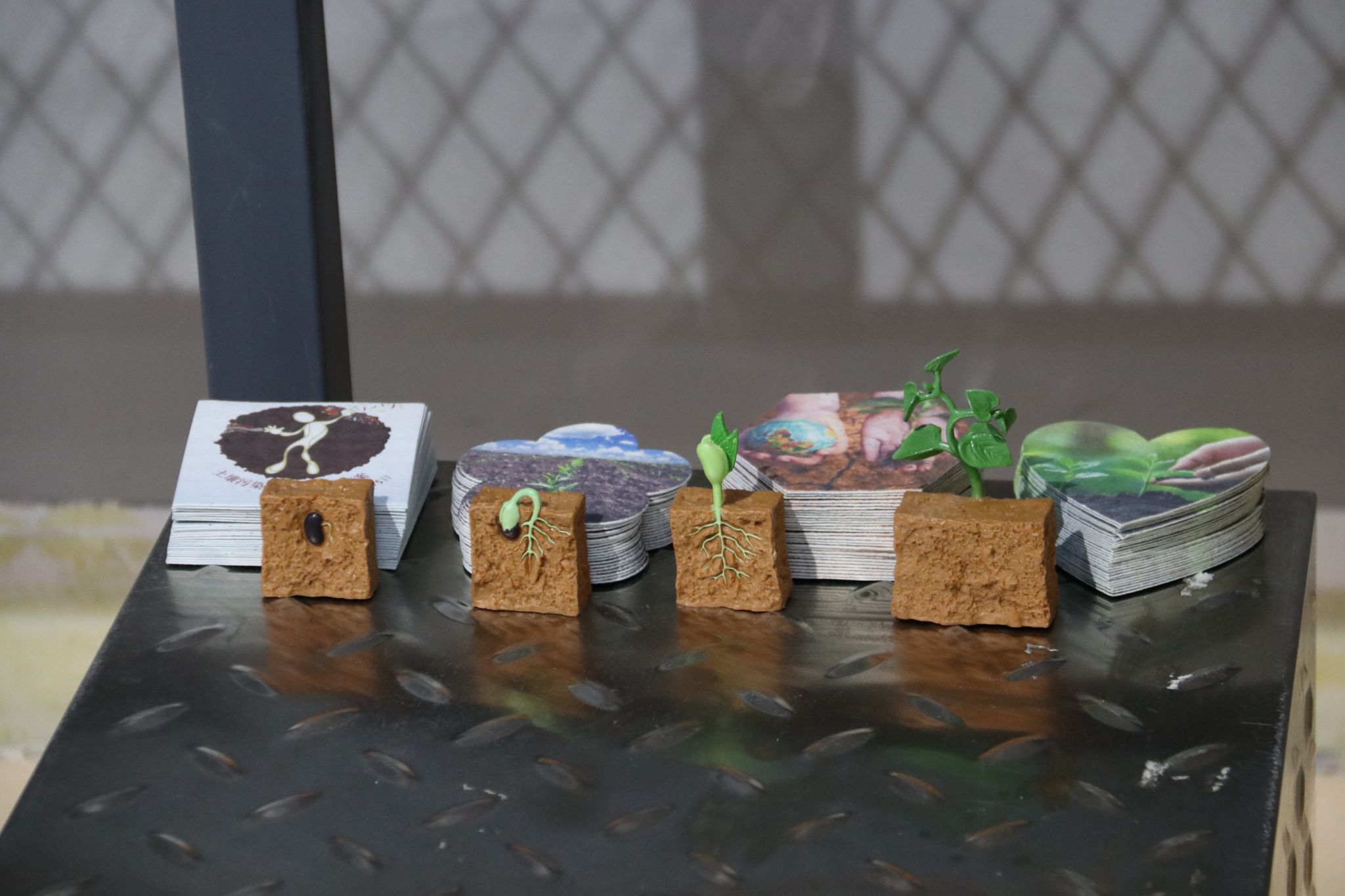 艺术展第一板块通过展屏、模型等介绍土壤的起源、构成及功能科普;第二板块通过图文、音视频等趣味形式讲述土壤的成长故事,同时将土壤风貌与文化艺术巧妙结合;第三板块,通过夯土项链DIY、生态瓶制作等体验活动,参观者用双手感受土壤的温度和生命力。