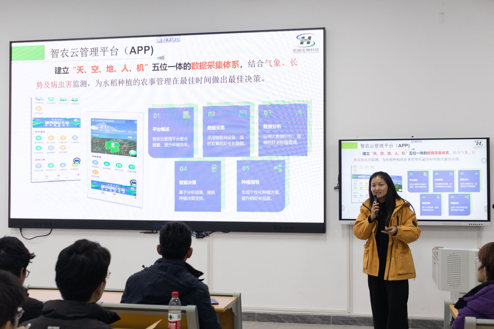 全国三八红旗手、湖南宏硕生物科技有限公司董事长熊姣军受邀担任产业导师并作主题报告。熊姣军以自身创业经历为主线,讲述返乡创业、牵头成立合作社、打造全球首个再生稻无人农场等在农业领域坚守的点点滴滴。同学们纷纷表示,将以熊姣军为榜样,怀揣对农业的热忱,努力在农业现代化建设中贡献青春力量。