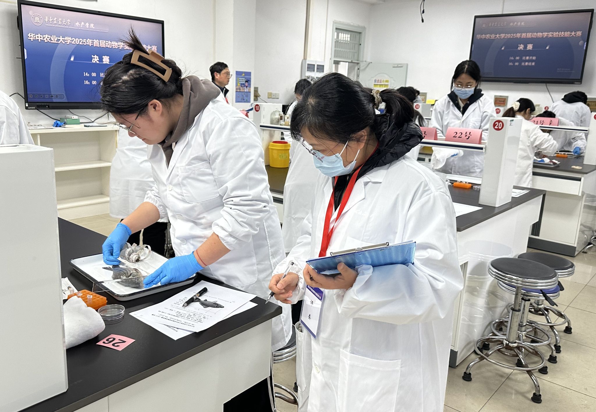 动物学课程组组长姬伟老师现场评分(通讯员 刘晨 摄)