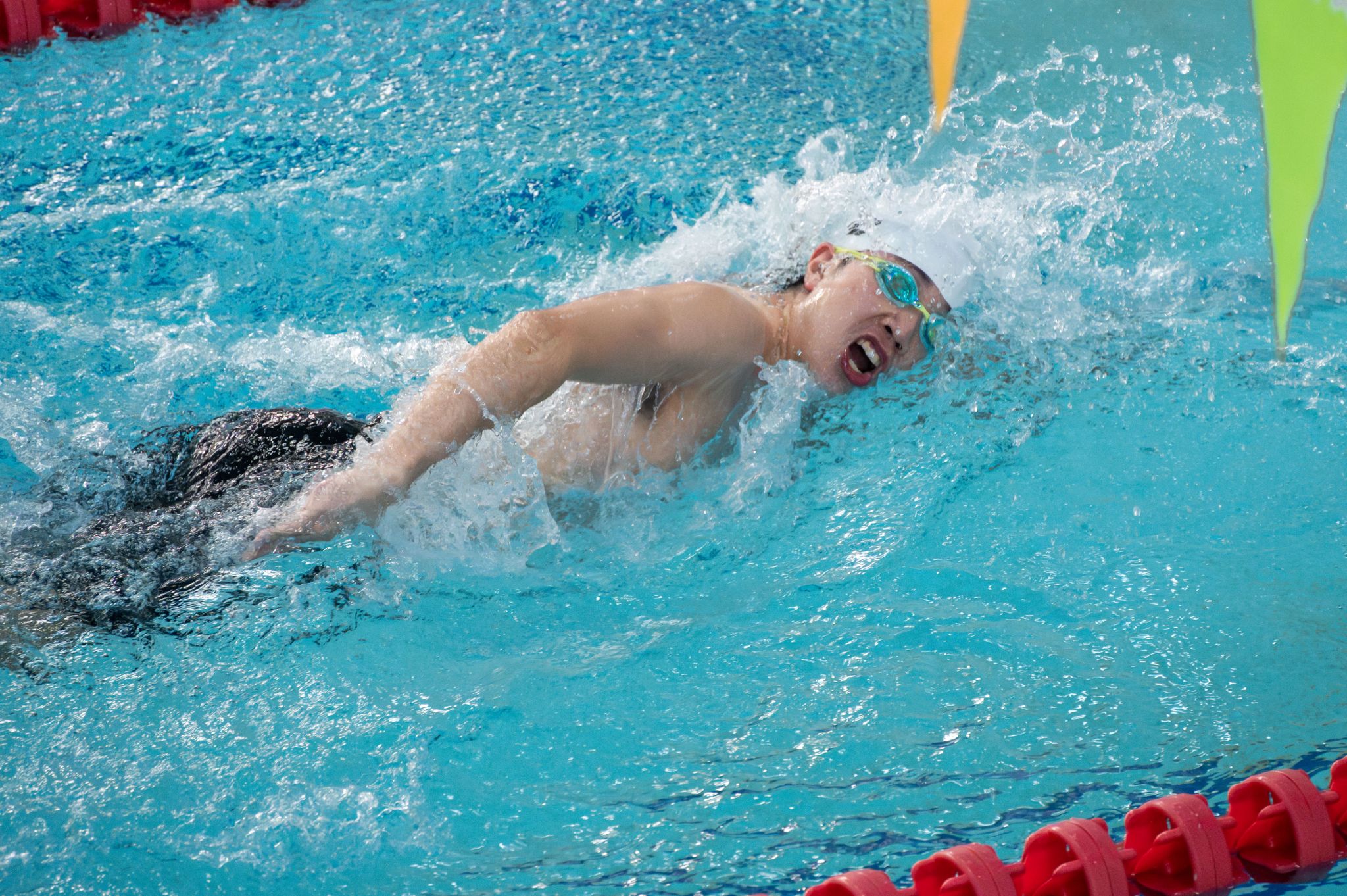 缪锘颜100米自由泳决赛(学通社记者 李馨瑶摄)