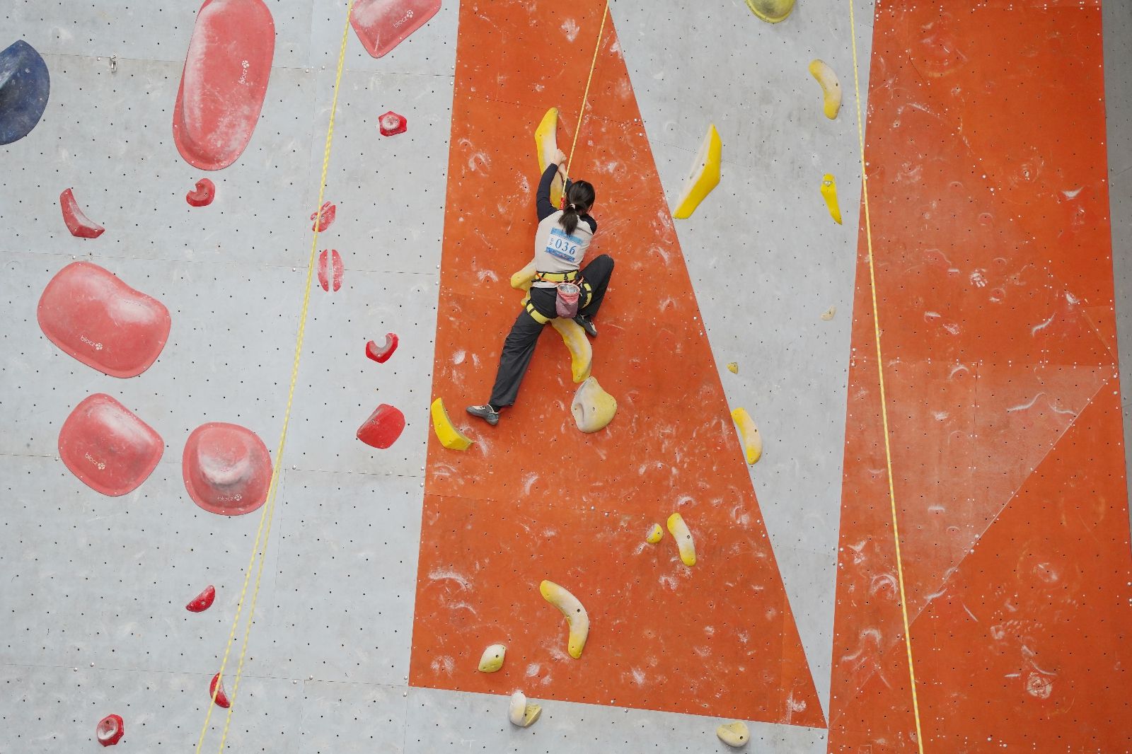 ▲华中农业大学攀岩队队员姚修影在比赛中(体育部 供图)