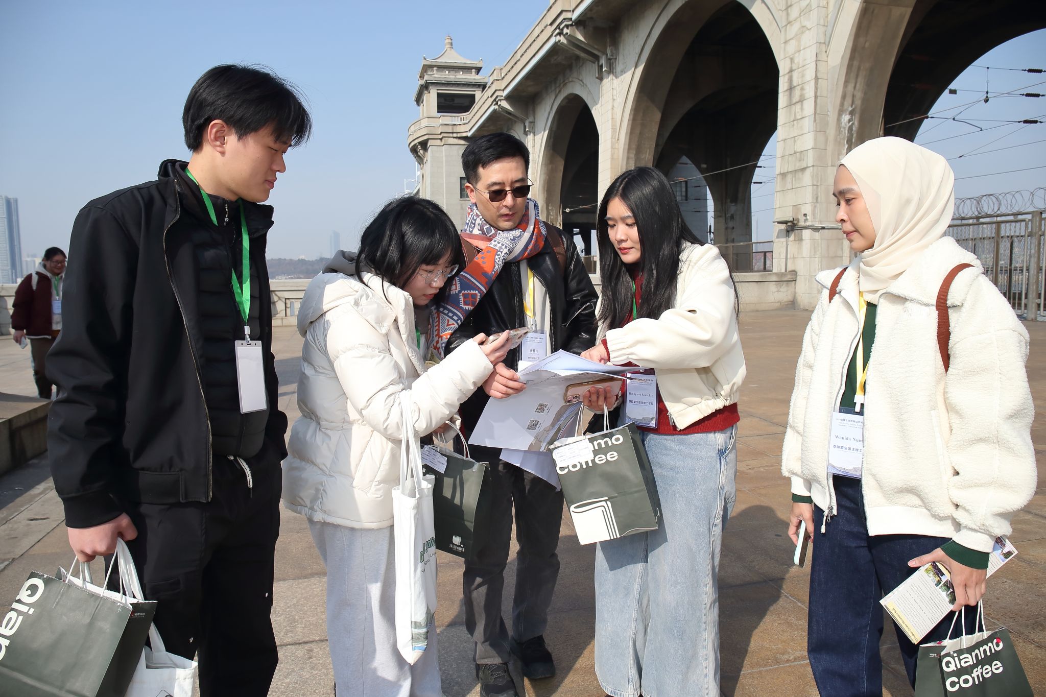 踏勘现场,各个小组的成员们不再仅是听众,他们手执地图与速写本,时而凝神观察地形地貌与市井生活,时而激烈讨论历史积淀与空间感受,时而在本子上快速勾勒灵感草图。走在民主路上,来自墨西哥瓜达拉哈拉大学Valeria Yamilet Gasca Viruega说:“我看到了类似我们国家老城的问题,但武汉的城市规模和山水环境,带来了一种完全不同的解决问题的思路。”